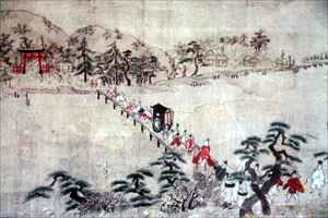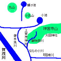 ![]() 下社、社頭の儀 ![]() ![]() 下社、「走馬の儀」 ![]() 下社、「走馬の儀」 ![]() ![]() 上社、社頭の儀 ![]() 上社、「走馬の儀」 ![]() 上社、社頭の儀斎王代、女人は神館(こうだて)という仮屋に入り、神事を見守る。神館は「こうたち」ともいわれて、御生野(みあれの)の斎王の仮屋を意味した。 ![]() 上社、「山駆」(やまがけ)の神事 ![]() 上社、「山駆」 ![]() 上賀茂神社の北に丸山(149m)があり、さらにその北に神山がある。丸山の西麓にみあれ所(御阿礼所、御生所、御生野、御生所野)がある。小円山は、137m。蟻が池は阿礼ヶ池とも書かれていたという。 |