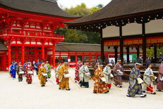 ![]() ![]() 糺の森を進む行粧、神馬、下鴨神社 |