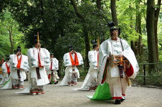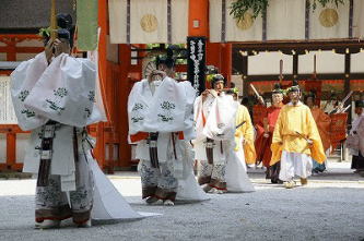 ![]() 東游、神馬に向って舞が奉納される。下鴨神社 |