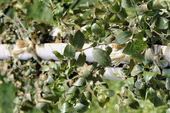 ![]() ![]() 御蔭神社、御生木(みあれぎ)、榊の若葉は神の依代(よりしろ)となる。 |