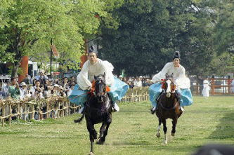 ![]() 流鏑馬、公家装束の射手 ![]() ![]() ![]() |