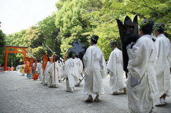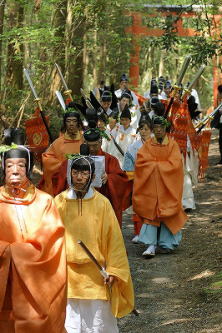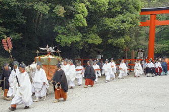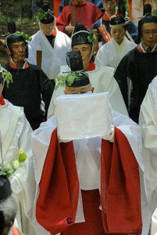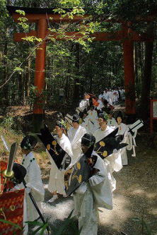 ![]() ![]() 御蔭神社、神霊櫃内の御神霊が山を下る。 |