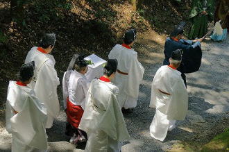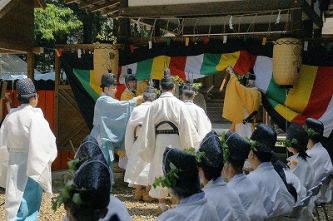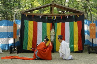 ![]() 舞楽の奉納、賀茂波璽神社 |