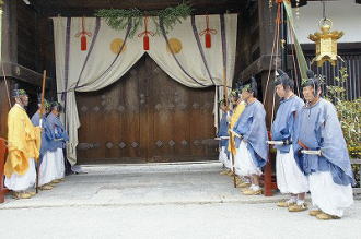 ![]() 錦蓋を外された神馬、中門より出る、下鴨神社 |
