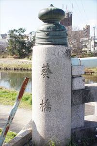 ■14 葵橋(-) 下鴨神社に近く葵祭の祭列が通る。一部擬宝珠風親柱がある。北山が望める。 五山送り火の「船形」が見える。 ◈所在地:〒606-0801 京都市左京区下鴨宮河町下鴨 ◈路線名: 京都停車場線 ◈架設年:1960年 ◈橋種:鋼橋/3径間連続鋼プレートガーター ◈橋長:75m ◈幅員:22m/22.6m ◈隣橋(下覧)との河心距離:205m ⇒葵橋 |