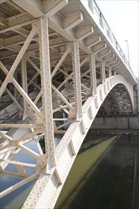 ■32 九条跨線橋 (くじょう-こせんきょう) ✓ ◈所在地:〒605-0981 京都市東山区本町14丁目 ◈路線名: 四ノ宮四ツ塚線(九条通) ◈架設年: 1933年 ◈橋種: 鋼橋/単純鋼プレートガーター +単純鋼アーチ+単純鋼プレートガーター ◈橋長: 418.33m/418m ◈幅員: 18m/18.8m ◈隣橋(下覧)との河心距離:22m(最短) |