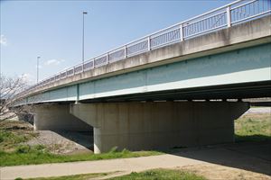 ■46 京川橋(-) 鴨川最南の小橋。 ◈所在地:〒612-8469 京都市伏見区中島河原田町 ◈路線名: 伏見向日線 ◈架設年:1952年 ◈橋種:鋼橋/2径間ゲルバー鋼プレートガーター+3径間単純PCT桁 ◈橋長:116m ◈幅員:10.5m/6.9m ◈隣橋(下覧)との河心距離: - ■京川橋歩道橋 ◈所在地:〒612-8469 京都市伏見区中島河原田町 ◈路線名: 伏見向日線 ◈架設年:1972年6月 ◈橋種: 鋼橋 ◈橋長: 116m ◈幅員: 1.7m ■京川橋側道橋(きょうかわ-そくどうきょう) ◈所在地:〒612-8469 伏見区中島河原田町 ◈路線名: 伏見向日線 ◈架設年: 1981年3月 ◈橋種: 鋼橋 ◈橋長: 116m ◈幅員: 3.4m |