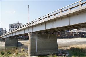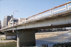 ■23 団栗橋 (-) 橋周辺で釣人の風景が見られる。 ◈所在地:〒605-0801 京都市東山区宮川筋一丁目 ◈路線名: 新道緯2号線(団栗通) ◈架設年:1963年 ◈橋種:鋼橋 3径間連続鋼プレートガーター ◈橋長:61.5m/62m ◈幅員:9.5m/10.2m ◈隣橋(下覧)との河心距離:400m ⇒団栗橋 |