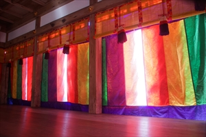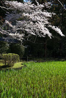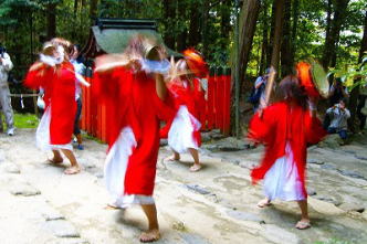 大田山の麓に大田神社(おおた/おほたの-じんじゃ)はある。上賀茂神社の東にあり、境外摂社になる。かつて、「恩多社」(『中右記』)、「太田(おほたの)神社」(『延喜式』)とも記された。 祭神は天鈿女命(あめのうずめのみこと)、猿田彦命(さるたひこのみこと、大田命)を祀る。 式内社。平安時代、『延喜式神名式(延喜式神名帳)』(927)中「愛宕郡 二十一座 大八座 小十三座」の「太田神社」に比定されている。 京都洛北・森と水の会。 芸能・芸事上達の信仰があり、芸舞妓も詣でる。長寿福徳、病気平癒、方除け、縁結びの信仰がある。 ◆歴史年表 創建、変遷の詳細は不明。 かつて、渡来系先住民の福神が祀られた。上賀茂神社創祀よりも古い農耕神とみられる。また、五穀豊穣を祈願し地主神を祀ったともいう。社域は、この地から一度も離れていないという。また、壬生、丹生、小野などの氏族祖神ともいう。これら白鬚社、百大夫社、福徳社として境内に祀られている。 後に、上賀茂神社に近いこの地も、沼沢の池の開墾に関与した賀茂族の影響が及ぶ。この頃、賀茂社の境外末社になり、上賀茂八末社の一つに数えられた。 平安時代、1120年、第74代・鳥羽天皇が賀茂社に行幸し、恩多社(大田神社)は官幣に預かる神社だったと記されている。(『中右記』) 江戸時代、1628年、現在の社殿が建てられた。 近代、1877年、上賀茂神社の第4摂社より第2摂社になる。 1939年、カキツバタは、国の天然記念物に指定された。 ◆建築 ◈「本殿」は、江戸時代前期、1628年に造営された。一間社流造、檜皮葺。 ◈「拝殿」は、江戸時代前期、1628年に造営になる。割拝殿。 ◆チャンポン神楽 毎月10日の午後7時頃より、里神楽の「巫女神楽」(京都市登録無形民俗文化財)の月次祭奉納が続けられている。 太銅拍子、鼓、絞り太鼓などの囃子の音から、「チャンポン神楽」と俗称されている。奉仕は、当社の刀祢(とね)の家に限られている。奏者3人、巫女1人の4人構成になる。井手達は、男性は素襖(すおう)、女性は襷禅(ひばかま)に緋袴になる。 里神楽は、参拝者の願掛けにより舞われる。「チャン」「ポン」のお囃子に合わせて、巫女が立ち右手に五十鈴を持つ。巫女は、鈴を鳴らしながら右回り3回、左回り3回、右回り3回と回転し舞い続ける。 動きが少なく、素朴な神楽の詳細については分かってない。少なくとも江戸時代には行われていた。家内安全、長寿延命を祈願する巫女神楽として、日本で最も古い舞いの形式を残しているという。春祭(4月10日)などでも奉納されている。 ◆池 境内に広がる池の広さは2000㎡ある。古代、京都が湖だった頃の面影を残す泥炭池といわれる。かつてこの一帯は、深泥池と合わせた一つの沼地だったという。 鴨川上流、雲ヶ畑の池とこの沢は地底で繋がっているとの伝承もある。また、この付近の社家・鴨脹家と御所の池も繋がるともいう。 本殿裏山よりの湧水により、沼沢は保たれてきた。近代、1955年頃より、周辺の開発に伴い湧水が涸れ始めた。その後、水量確保が困難になり、現在は井戸水で補う。 ◆三石 参道の石橋が架かる小川中に3つの石があるという。「蛇の枕」、「雨乞いの石」などと呼ばれている。枕石を農具などで叩くと蛇が怒り、雨を降らせるといわれた。 ◆カキツバタ 境内の大田の沢には、天然のカキツバタ(アヤメ科アヤメ属)、25000株の群落が見られる。 大田神社のカキツバタは、平安時代にはすでに知られていた。藤原俊成(1114-1204)は、「神山や 大田の沢の かきつばた 深き頼みは 色に見ゆらむ」と詠んだ。(五社百首) 近代、1939年に国の天然記念物に指定されている。開花は、5月初旬から中旬頃になる。 ◆樹木 コジイ、ナギ、ヒノキがある。 ◆年間行事 福徳社の祭礼「幸在祭(さんやれさい)」(大田神社に参拝し、その後、上賀茂神社でお祓いを受ける。)(2月24日)、春祭(チャンポン神楽奉納。)(4月10日)、賀茂祭(午前に「上賀茂やすらい祭り」のシャグマの舞が当社に奉納される。)(5月15日)、例祭(チャンポン神楽奉納)(11月10日)。 *年間行事(拝観)などは、中止・日時・内容変更の場合があります。 *年号は原則として西暦を、近代以前の月日は旧暦を使用しています。 *参考文献・資料 『京の古代社寺 京都の式内社と古代寺院』、『京都・山城寺院神社大事典』、『京都府の歴史散歩 上』、『京都大事典』『京都事典』、『京都市の指定文化財 第5集』、『昭和京都名所図会 3 洛北』、『京都の寺社505を歩く 下』、『京都のご利益手帖』、『京都 神社と寺院の森』 ![]() ![]() ![]() ![]() ![]() ![]() ![]() ![]() |