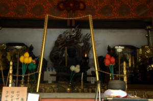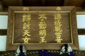![]() 不動堂、中央に不動明王像、右に準提観世音像、左に辧財天女像を安置する。 |