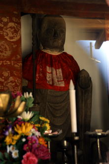 山科区大宅、音羽山山麓に歓喜光寺(かんきこう-じ)は建つ。隣接し大宅中学校があり、大宅廃寺遺構がある。 山号は紫苔山(したい-ざん)、院号は河原院という。 時宗十二派中の時宗六条派本山、本尊は阿弥陀如来。 ◆歴史年表 鎌倉時代、1291年、一遍の弟子・聖戒(しょうかい)は、石清水八幡宮の南境に善導寺(綴喜郡八幡市)を建立する。一遍が石清水八幡宮で神託を受けたとされ、その縁による。歓喜光寺の前身になる。(『開山弥阿上人行状』) 1299年、聖戒に帰依した関白・九条忠教の寄進により、善導寺は河原院(源融左大臣の旧跡、400m四方、現在の渉成園付近)跡地に移される。付近に祀られていた菅原是善(道真の父)の旧邸(上京区堀松町)の天満宮、その神宮寺・歓喜光寺を合併する。六条道場河原院歓喜光寺が建立された。聖戒を1世にする。(『開山弥阿上人行状』)。同年、一遍十周忌に当たり『一遍上人絵詞伝』が作成されている。 1323年、聖戒没後、一色、瑞光、正道と継承され、歓喜光寺は六条派の拠点になる。(『歓喜光寺過去帳』) 南北朝時代、1345年、六条烏丸にあった。(『師守記』同年条) 1347年、焼失する。(『師守記』) 1379年、類焼する。(『花営三代記』) 1389年、寺領60カ所(のち1カ所増)、末寺は6カ寺(のち2寺増)を有していた。(「歓喜光寺敷地以下寺領并所々末寺領等目録」) 1391年、山名氏清、山名満幸らの反幕した明徳の乱で、上原入道が境内に走入る。 室町時代、1394年、室町幕府3代将軍・足利義満が「絵詞伝」を披見する。 1419年、焼失する。(『看聞日記』『康富記』) 1428年、類焼した。(『後鑑」) 1432年、室町幕府第6代将軍・足利義教が「絵詞伝」を披見する。(『満済准后日記』) 1434年、類焼する。(『看聞日記』) 1436年、類焼した。(『看聞日記』) 1480年、寺領を足利義政が安堵する。 1487年、関白・近衛正家が「絵詞伝」を披見する。(『後法興院記』) 1490年、類焼する。(『蔭涼軒日記』) 年代不明、この間に、六条大路東、堀川南に移ったという。(『中昔京師地図』) 1552年、荒廃し、高辻烏丸(下京区)に移す。(「歓喜光寺文書」の「室町幕府奉行人奉書案」) その後、本尊を遷し、各所を転々とする引道場になったという。一時、六条東洞院の地に移る。 安土・桃山時代、天正年間(1573-1592)、羽柴秀吉により京極錦小路(京極大路東、四条大路北、四条道場金蓮寺北)に移される。 江戸時代、1652年、類焼する。 1676年、清浄光寺下に入り、時宗遊行派に属した。(『遊行藤沢歴代系譜』) 江戸時代中期、多くの塔頭があった。 1786年、類焼する。 1864年、類焼した。蛤御門の変(禁門の変)の火災による被災者のために、京都所司代は米を配給した。その配給所の一つになる。 近代、1872年、境内の鎮守社・錦天神社(現在の錦天満宮)、その末社で源融を祀る塩釜社(錦天満宮内に現存)を分離する。 1889年、類焼した。 1907年、5月、東山五条に移転する。その地の法国寺(東山区遊行前町)を吸収合併し、歓喜光寺とした。地蔵堂は境外仏堂になる。 現代、1975年5月/1974年、現在地(山科区大宅)に移転する。京都市の要請により公共事業に協力した。本堂、地蔵堂は解体復元され移されている。 ◆聖戒 鎌倉時代中期-後期の時宗の僧・聖戒(じょうかい/しょうかい、1261-1323)。男性。俗名は河野通定、号は弥阿。伊予国(愛媛県)の生まれ。領主・河野通広の孫/一遍の従弟/実子/弟/甥ともいう。一遍の弟子・真教の徒弟ともいうが異説もある。一遍の修行に従い諸国を遊行した。1291年、関白・藤原忠教の信を得て、善導寺(歓喜光寺の前身、六条道場)を建立する。1299年、『一遍上人絵伝(歓喜光寺本)』12巻を撰した。一遍の臨終の際に遺誠(ゆいかい、訓戒、遺訓)を聞いた。63歳。 時宗十二派中の六条派の祖。 ◆一遍 鎌倉時代中期-後期の僧・時宗開祖・一遍(いっぺん、1239-1289)。男性。智真、捨聖(すてひじり)、遊行上人と呼ばれた。父・伊予(愛媛県)松山・水軍家系の河野通宏の次男。一族は承久の変(1221)に加わり衰微し、父は出家する。1248年、10歳で母と死別した。父の勧めで継教寺・絶縁のもとで出家し、随縁と称した。幼少より聡明だったという。1251年、13歳で師・善入とともに太宰府の浄土宗西山派証空弟子・聖達(しょうたつ)を訪ね師事した。肥前の華台にも学ぶ。智真と改める。1263年、父の死を契機に帰郷した。還俗、妻帯し家督を継ぐ。相続に絡み親族に襲われ、1271年頃、再び出家した。1271年、太宰府の聖達を訪ね、信州・善光寺で「二河白道」の喩に感得する。阿弥陀仏により救済されると確信する。伊予・窪寺に籠る。1273年、伊予国・菅生の岩屋に参籠した。1274年、妻・超一、娘・超二、従者念仏坊とともに遊行の旅に出る。四天王寺、高野山・金剛峯寺を経る。熊野権現の夢告により、一遍と名乗り、賦算の行(念仏札を配る)を始めた。妻子と別れる。1275年、熊野、京都、西海道より伊予に戻る。1279年、京都・因幡堂、善光寺を経る。信濃国の伴野/小田切の里より敬愛する空也に倣い踊り念仏を始めた。1280
