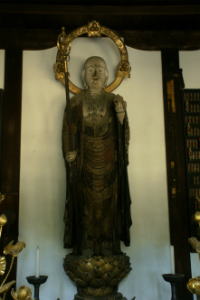 浄福寺(じょうふく-じ)は、朱塗りの山門が浄福寺通に面している。「日本最古の違法建築の寺」として知られる。「引接地蔵」と呼ばれる地蔵尊が安置されている。赤門があることから「赤門寺(あかもん-でら)」、「村雲(むらくも)寺」ともいう。山号は恵照山(えしょう-ざん)という。 浄土宗知恩院派、本尊は阿弥陀如来。 江戸時代の洛陽四十八願所地蔵めぐり(京都四十八願寺)の第14番(7番とも)札所、札所本尊は浄土引接地蔵。 ◆歴史年表 創建、変遷の詳細は不明。 奈良時代-平安時代、延暦年間(782-806)、奈良・興福寺の学僧・賢憬(けんけい)が葛野郡村雲に堂宇を建立した。唐より将来した釈迦如来像を安置したという。平安時代には、二十五大寺のひとつとされた。(寺伝、『拾芥抄』)。当初は天台宗だった。一誓を開山に迎えたともいう。 また、平安時代、896年、第58代・光明天皇中宮・班子(はんし)が建立したともいう。天台宗と法相宗の年分度者2人を出す。定額寺に列せられ、「浄福寺」の額を贈られたという。(『類聚三代格』) 901年、宇多法皇(第59代)は、亡き母・班子女王のために当寺で一切経を供養する。(『日本紀略』) 912年、焼失する。 960年、焼失した。 天台僧・良源(912-985)が西坂本(左京区)に再興する。 再び焼失する。 鎌倉時代、1276年、第91代・後宇多天皇の勅により、一条村雲(上京区)に移る。以後、「村雲寺」とも呼ばれた。(『拾芥抄』) 14世紀(1301-1400)初め、臨済宗・仏燈国師(約翁徳倹)の一門が住した。 1318年、後宇多天皇の命により、鎌倉・建長寺の元暁(がんぎょう)が住した。 南北朝時代、1344年、元暁の請願により室町幕府の祈願寺になる。室町幕府初代将軍・足利直義が300貫文を寄付する。(『浄福寺由緒書』) 1482年、宗清が天台宗に改めた。 1525年、第104代・後柏原天皇は、知恩院・超誉存牛に帰依した。当寺の三昧堂建立を許し、「念仏三昧堂」の勅額を寄せる。「天台浄土宗」と称し、以後、浄土宗を兼学にする。 1571年、崇林(そうりん)が入寺、浄土宗専宗に改めた。 1572年、知恩院末寺になる。 安土・桃山時代、1587年/天正年間(1573-1592)、相国寺門前北に移る。 江戸時代、1615年、現在地に移る。京都所司代・板倉勝重が援助したという。 1628年、鐘楼が再建される。 寛文年間(1661-1673)、浄土引接地蔵は第112代・霊元天皇の命により、僧・宝山が洛外・六地蔵以外の48か寺の地蔵尊を選んだ、洛陽四十八願所の霊場のひとつになる。 享保年間(1716-1736)、鐘楼、南門を除き焼失したともいう。 1719年、焼失したともいう。 1730年、旧6月20日、享保の大火(西陣焼け)で類焼した。災禍翌日、焼失した報恩寺、浄福寺、大超寺、護念寺、瑞雲院、親縁寺各庵、香林寺、無量寺、善福寺の9寺は、知恩院へ被害を届けている。(『知恩院日鑑』) 1731年、西陣焼けでは焼失を免れたともいう。(『西陣天狗筆記』) 1731年-1733年/1733年、現在の本堂が再建されたともいう。 1736年、方丈が再建される。 1756年、釈迦堂が再建された。 1788年、天明の大火により焼失する。本坊は類焼を免れた。(『翁草』) 幕末、境内は薩摩藩下級武士の宿所になる。藩士らは「浄福寺党」と呼ばれる。 近代、1887年、境内に当寺、建仁寺、本圀寺、妙覚寺による共済学校が開校する。現在の浄福寺幼稚園の前身になる。 現代、1985年、本堂以下9棟が京都市指定文化財になる。 ◆賢憬 奈良時代の法相宗の僧・賢憬(けんけい、714-793)。男性。賢璟。尾張国(愛知県)の生まれ。興福寺の宣教に師事、754年、唐の僧鑑真を難波に迎え、755年、旧戒を破り鑑真に具足戒を受けた。758年、唐招提寺に一切経を奉納。774年、律師。778年頃、大和国室生山で延寿法を修し、山部皇太子(第50代・桓武天皇)の病を治した。780年、多度大社神宮寺に三重塔を建立した。宝亀年間(770-780)、室生寺を創建した。784年、大僧都。785年、最澄の戒牒や『多度神宮寺伽藍縁起並資財帳』に、僧綱の一人として署名した。793年、平安遷都選定に際し山背に派遣される。比叡山文殊堂供養で導師をつとめた。賢璟(けんきょう)、尾張僧都、尾張大僧都とも呼ばれた。79歳。 ◆班子 女王 平安時代前期の女御・班子 女王(はんし-じょうおう、833-900)。女性。嵯峨野の旧仲野村の生まれともいう。父・第50代・桓武天皇皇子・仲野親王。時康親王(第58代・光孝天皇)の即位前に妃になる。定省親王(第59代・宇多天皇)、為子内親王ら4男4女を産む。884年、光孝天皇即位により従三位女御、887年、宇多天皇即位により皇太夫人、孫第60代・醍醐天皇即位により皇太后になる。897年、醍醐天皇に娘・為子内親王を入内させる。生前、藤原時平による妹・穏子の入内を拒み続けた。仁和寺で出家し、御室に過ごした。68歳。 ◆川端 道喜 安土・桃山時代の豪商・餅商人・川端 道喜(かわばた-どうき、?-1592)。男性。本名は中村五郎左衛門、通称は餠屋。正親町(内裏近辺)/鳥羽の餅屋・渡辺進(すすむ)に婿入りし渡辺弥七郎と称した。入道し道喜と号した。1504年頃、皇居垣外を流れる御溝(みかわ)傍の新在家(
