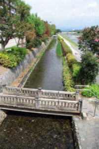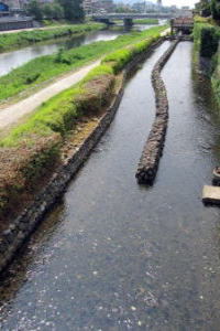 ![]() 二条大橋から南方向西岸、みそそぎ川(左)と、高瀬川に流すための仕切りがある。 ![]() 二条大橋から北方向西岸、みそそぎ川(左)、鴨川(右)。 ![]() 二条大橋西岸南付近、みそそぎ川の分流点、左奥は、高瀬川に通じている。 ![]() みそそぎ川の鴨川取水口、賀茂大橋下流西岸 |