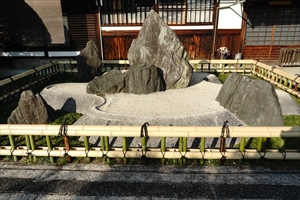 出水通六軒町西入ル七番町(しちばん-ちょう)にある光清寺(こうせい-じ)は、宮家との関わりが深い。伏見宮直属の無本寺格(むほんじ-かく)として宮準門跡に列せられた。かつて岩倉家の菩提寺だった。 「出水の七不思議」の一つ「浮かれ猫」の伝承がある。重森三玲の作庭による庭がある。 山号は心和山(しんわ-ざん)、院号は慈眼院(しげん-いん)という。 臨済宗建仁寺派、本尊は聖観音(聖観世音菩薩立像)。 弁天堂は、三味線・諸芸上達の祈願信仰がある。 ◆歴史年表 江戸時代、1669年、伏見宮貞致(ふしみのみや-さだゆき)親王が、生母・慈眼院殿心和光清尼(安藤定子)の菩提を弔うために、臨済宗・杲山(こうざん)禅師を開山として創立された。(寺伝)。宮家領地の聚楽第に建てられた。また、義浄により開かれたともいう。当初は天台・華厳・真言・禅の四宗兼学とした。初めは、栂尾(とがのお)善妙寺(ぜんみょうじ)村から名義を移し、聲實庵(声実庵、しょうじつ-あん/せいじつ-あん)と称したという。 1701年、焼失する。 1706年、焼失し、伏見宮邦永親王により再建される。祖母・慈眼院殿の法名より「心和山」と号し、寺号は「光清寺」に改められる。以後、近代まで、無本寺格、準門跡に列せられた。 1758年、宮家が江戸に移る際に、鎮守社・玉照(たまてる)神社が伏見宮邸(今出川)より当寺に遷される。 近代、1868年、臨済宗建仁寺派に属する。 現代、1967年、現代の作庭家・重森三玲は「心和の庭」を作庭する。 1974年、重森は庫裡前に「心月庭」を作庭した。 ◆杲山 義洋 江戸時代前期の臨済宗の僧・杲山 義洋(こうざん-ぎよう、?-?)。詳細不明。杲山義洋禅師。1669年、光清寺を開山した。 ◆伏見宮 貞致 親王 江戸時代前期の皇族・伏見宮 貞致 親王(ふしみのみや-さだゆき しんのう、1632-1694)。詳細不明。男性。父・伏見宮第10代当主・貞清親王。邦尚(くになり)親王の子とも。母・少納言局・安藤定子。1660年、第108代・後水尾天皇の猶子、親王になる。弟・邦道親王の跡を継ぎ、第12代当主になる。式部卿に進む。王子女に邦永親王、真宮理子女王(徳川吉宗室)がある。63歳。 ◆伏見宮 邦尚 親王 江戸時代前期の皇族・伏見宮邦尚親王(ふしみのみや-くになり しんのう、1613-1654) 。詳細不明。男性。父・貞清(さだきよ)親王の第2王子。伏見宮家(11代とも)。1626年、親王になる。病のため元服せずに亡くなる。法号は乾徳院。41歳。 ◆慈眼院殿 心和 光清 尼 江戸時代の慈眼院殿心和光清尼(じげんいん-しんわ-こうせいに、 ?-?)。詳細不明。女性。少納言局(しょうなごん-きょく)・安藤定子とみられる。父・安藤定元/安藤定吉、曾祖父は邦輔親王王子・安藤惟実(邦茂王)。10代当主・貞清親王(1596-1654)の側室の一人になる。貞致親王の母。戒名は慈眼院殿心和光清大信女。 ◆伏見宮 邦永 親王 江戸時代中期の皇族・伏見宮 邦永 親王(ふしみのみや-くになが しんのう、1676-1726)。男性。幼名は茶々丸、若宮。父・伏見宮貞致親王の第2王子。1695年、第112代・霊元天皇の猶子になり、親王宣下、名を邦永と賜わる。伏見宮第13代当主になる。中務卿に任じられ、後に一品に進む。妃は霊元天皇第5皇女・福子内親王。51歳。 ◆岩倉 恒具 江戸時代中期の公卿・岩倉 恒具(いわくら-つねとも、1701-1760)。男性。初名は具脩。父・岩倉乗具。竹内式部に神道と儒学を学ぶ。1732年、従三位、その後、参議、1753年、権中納言になる。1758年、竹内、若手公家達らの尊王論者が弾圧された宝暦事件にかかわり、幕府から処罰された。1891年、名誉回復になる。60歳。 ◆重森 三玲 近現代の作庭家・重森 三玲(しげもり-みれい、1896-1975)。男性。計夫(かずお)。岡山の生まれ。1911年、15歳で茶道、華道を学ぶ。1914年、18歳で茶室・露地を設計する。1917年、日本美術学校で日本画を学び、生花・茶道を習得し、文化・芸術のみならず、宗教・哲学にも関心があった。1922年、文化大学院の創設を企図する。結婚した。1923年、関東大震災に被災し岡山に還る。1926年、フランスのミレーに憧れ、自ら三玲に改名した。1929年、美術研究・思想的発展のためとして京都に移る。1931年、日本花道芸術学園を設立する。1932年、日本庭園の研究団体、京都林泉協会の会長職に就く。華道草月流の創始者、勅使河原蒼風(1900-1979)らと生花の革新を唱える。1933年、「新興いけばな宣言」を起草した。1934年、室戸台風で各地の庭園が被災し、1936年-1938年、全国の庭園の精緻な実測調査(300カ所以上)を行う。1949年、前衛的な生花の創作集団「白東社」を主宰し、前衛生花作家・華道家の中川幸夫(1918-2012)も参加した。1950年頃から、アメリカ合衆国の彫刻家・画家のイサム・ノグチ(Isamu Noguchi、1904-1988)とも交流を深めた。78歳。 庭園については、全国の200あまりの作庭に関わる。本格的に作庭した京都では、東福寺方丈庭園(1943)に始まり、京都林泉協会30周年記念の瑞峯院庭園(1961)、最後の作庭は松尾大社庭園(1975)になった。「永遠のモダン」を目指した。 1936年以来、独自に行った全国の庭園