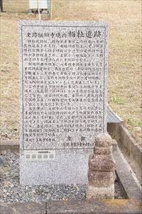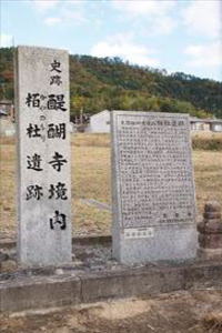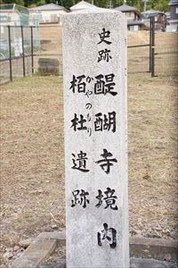 ![]() ![]() 「史跡 醍醐寺境内栢杜遺跡」の石標 ![]() 説明の石板 ![]() |