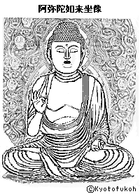 ◈中尊の「阿弥陀如来坐像」(153/153.3cm)は、平安時代後期(12世紀後半)の作になる。廃寺になった塞耳庵(そくに-あん、左京区岩倉木野町)より遷されたという。