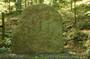猿丸大夫の歌碑、「おくやまに もみぢふみわけ なくしかの こゑきくときぞ あきはかなしき」(『古今和歌集』215、『小倉百人一首』5)