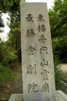 最勝金剛院(さいしょう-こんごう-いん)は東福寺境内の東に位置している。東福寺の特別由緒寺院であり、九条家墳墓の管理を行っている。 臨済宗東福寺派。 ◆歴史年表 平安時代、1147年、摂政・藤原忠通は、室・宗子を伴い法性寺殿を尋ねる。宗子の発願により法性寺の域内東方の地に御堂の建立が始まる。 1148年、最勝金剛院は建立された。 1150年、最勝金剛院は藤原宗子により建立と記されている。(「太政官符」、東福寺文書) 1155年、宗子は法性寺御所で没し、御所南東二町あまり、山中の塔に埋葬されたという。その仏事が近くの最勝金剛院で行われている。(『兵範記』) 1180年、皇嘉門院は異母弟の九条兼実長子・良通を猶子とし最勝金剛院領など譲る。 鎌倉時代、1204年、宜秋門院は九条良経による経営協力の下、最勝金剛院領などを譲渡される。 1205年、最勝金剛院領に法性寺周辺も含まれ、法性寺最大の寺院になっていたとみられる。 1250年、東福寺子院になっていたとみられる。(「九条家文書」) 室町時代、衰微した。 現代、1971年、旧地付近に再興された。 ◆藤原宗子 平安時代後期の藤原宗子(ふじわら-の-そうし/むねこ、1089-1155)。女性。父・権大納言・藤原宗通、母・修理大夫・藤原顕季の娘。関白・藤原忠通の妻になる。1122年、皇嘉門院聖子(崇徳天皇中宮)を産む。ほかに男子3人、女子1人がいる。法性寺殿で亡くなる。最勝金剛院近くに葬られたという。墓は特定されていない。66歳。 ◆九条兼実 平安時代後期-鎌倉時代前期の政治家・九条兼実(くじょう-よしみち、1149-1207)。男性。父・摂関家の藤原忠通、母・女房加賀(藤原仲光の娘)。1166年、右大臣になる。1156年、異母姉の皇嘉門院の猶子になる。1158年、兄・基実の猶子として元服した。左近衛権中将、権中納言、左近衛権中将、権大納言・右近衛大将、内大臣を経て、1166年、右大臣に進み、1174年、従一位に昇る。1179年、平清盛の権力奪取後、1185年、頼朝内覧の宣旨により、1186年、摂政・藤原氏長者になる。1187年、記録所を設ける。1189年、太政大臣、1190年、娘・任子を入内させ、第82代・後鳥羽天皇中宮にさせる。1192年、後白河法皇(第77代)没後、頼朝に征夷大将軍を宣下する。だが、1196年、政変により失脚した。弟の天台座主・慈円の後見になり仏教界に影響を及ぼす。息子、妻を亡くし法然に帰依した。1202年、出家、円証と号した。山荘の月輪殿に隠棲する。後法性寺殿、月輪殿と称された。 和歌に親しみ、藤原俊成・定家らの庇護者になる。40年間の日記『玉葉』がある。 九条家を興した。内山に葬られた。墓は現在、東福寺内にあり、1881年に公爵・九条道孝が「発見」したという。ただ、確定されていない。59歳。 ◆皇嘉門院 平安時代後期の第75代・崇徳天皇中宮・皇嘉門院(こうか-もんいん、1122-1182)。女性。藤原聖子(ふじわらの-きよこ)。父・関白・藤原忠通、母・藤原宗子(権大納言・藤原宗通の娘)。1129年、入内、1130年、中宮になる。1139年、鳥羽上皇皇子(第76代・近衛天皇)を猶子とし、父・忠通が外祖父になる。1141年、近衛天皇即位により皇太后、1150年、院号を宣下される。1156年、保元の乱により夫・崇徳上皇(1164年没)が讃岐に流され、出家し清浄恵と称した。1163年、剃髪した。異母弟の九条兼実の長子・良通を猶子とし、1180年、最勝金剛院領などを譲る。61歳。 ◆九条良通 平安時代後期-鎌倉時代前期の公卿・九条良通(1167-1188)。詳細不明。男性。父・九条兼実、母・従三位藤原季行の娘。皇嘉門院の養子になる。侍従、右近中将、同大将、1186年、内大臣。病がちで22歳で急死した。 和漢の才に秀で連句、詩会などを多く催した。22歳。 ◆宜秋門院 平安時代後期-鎌倉時代中期の第82代・後鳥羽天皇中宮・宜秋門院(ぎしゅう-もんいん、1173-1239)。九条任子(くじょう-たえこ/にんし)。女性。父・九条兼実、母・藤原兼子(藤原季行の娘)。1190年、入内し中宮になる。1195年、春華門院を産む。1197年、父・兼実の罷免に伴い内裏を退出、両親兄弟らと九条に移る。1200年、院号宣下。1201年、法然を戒師として出家し、清浄智と称した。1212年、院号、年官年爵を辞す。1204年、九条良経による経営協力の下、最勝金剛院領などを譲渡される。66歳。 ◆九条道家 鎌倉時代前期-中期の公卿・九条道家(くじょう-みちいえ、1193-1252)。男性。父・九条良経、母・一条能保の娘。1205年、左大臣、1206年、摂政、氏長者。1221年、後鳥羽上皇(第82代)討幕の挙兵である承久の乱で辞任した。子・頼経が4代将軍に就き復権する。1228年、関白、1229年、長女・藻壁門院を第86代・後堀河天皇の女御として入内させた。後に摂政。1232年、藻壁門院の産んだ第87代・四条天皇即位に伴い、外祖父として実権掌握する。1236年、東福寺建立を発願する。1238年、出家し行慧と称した。1242年、四条天皇夭逝後、次第に権勢を失う。1252年、孫の5代将軍・頼嗣が追われ失脚した。光明峯寺殿と称した。60歳。 ◆最勝金剛院 最勝金剛院は、宗子の没後に、娘・嘉門院、嘉門院の異母弟・九
