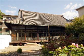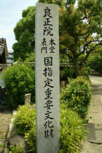 知恩院の黒門下に建つ塔頭・良正院(りょうしょういん)は、徳川家康の娘・督姫(とくひめ)追善のために創建された。 浄土宗総本山派、本尊は阿弥陀如来。 ◆歴史年表 室町時代、1428年、春浩翁軒善誉九感の創建による。当初は「浩翁軒」と呼ばれた。 安土・桃山時代、1595年、浩翁軒の住持に得入宗把が就く。 江戸時代、1615年、徳川家康四女・督姫が二条城で亡くなり、家康は知恩院満誉尊照を導師として葬儀を執り行う。遺骸は知恩院山上に葬られ、墓碑が立てられた。法名は「良正院殿智光慶安大禅定尼」と号した。 1631年/1624年、督姫の子・岡山藩主・池田忠雄は、母・督姫の菩提を弔うため、2代将軍・徳川秀忠の許を得る。浩翁軒の寺域を拡張し、1町四方(100m)に新たに伽藍を建立した。寺号は、母の法号「良正院殿智光慶安大禅定尼」により良正院とした。知恩院方丈に安置の督姫の位牌、御影を当院に遷し、以後、香花所になる。浩翁軒の得入宗把が改めて住持になる。 1633年、焼失している。その後復興される。 1863年、本圀寺事件で、良正院に集まった河田左久馬ら因幡二十士が、鳥取藩側用人・黒部権之介らを暗殺した。良正院本堂「竹の間」で、志士の一人・奥田萬次郎は自刃した。 近代、1926年、境内に保護少年指導施設が発足する。 1928年、歌碑「戦友」が建立される。 現代、1968年、境内に社会福祉法人・大照学園授産部(通所授産施設)を開設する。京都市内では初めての認可施設になる。 1980年、本堂、表門が重要文化財指定を受ける。 ◆得入宗把 江戸時代の浄土主の僧・得入宗把(?-1647)。詳細不明。浩翁軒と号した。1595年、1603年、1647年、浩翁軒の住持になる。知恩院の満誉、城誉、然誉、雄誉に仕えた。知恩院境内拡張(中の段)の功により、徳川家康より「宗把」の二字を贈られる。 ◆督姫 安土桃山時代-江戸時代前期の女性・督姫(とくひめ、1565-1615)。父は徳川家康。母は側室の西郡局(鵜殿長持の娘)の二女。三河国に生まれた。於普宇、富子とも称した。和睦のため、1583年、北条氏直に嫁ぎ二女を産む。1591年、氏直没後、徳川家へ戻る。1594年、豊臣秀吉の仲人により織田信長に仕えた池田輝政に再嫁し5男2女をもうけた。1613年、輝政が亡くなり落飾する。1614年、父・家康上洛の際に、対面のために二条城滞在中に病により亡くなる。41歳。 家康は知恩院に命じ同院山上に葬らせた。法名は「良正院殿智光慶安大禅定尼」。墓所は良正院(東山区)にある。 ◆池田忠雄 江戸時代の大名・池田忠雄(いけだ-ただかつ、1602-1632)。播磨姫路藩主・池田輝政の3男(6男とも)。母は徳川家康娘の督姫。1607年、松平姓をゆるされる。1610年、洲本藩主、1615年、兄忠継を継ぎ、備前岡山藩主池田(松平)家2代になる。1630年、寵童の小姓・渡辺源太夫が藩士・河合又五郎に殺害される。以後、河合をかくまった旗本と対立した。1632年、忠雄は仇討を遺言として亡くなる。1634年、源太夫の兄・渡辺数馬らは「鍵屋の辻の決闘」により本懐を遂げる。31歳。 墓所は岡山の清泰院にある。 ◆真下飛泉 近代の教育者・作詞家・真下飛泉(ましも-ひせん、1878-1926)。瀧吉。京都府加佐郡河守町(現福知山市大江町)の農家二男に生まれる。1893年、准教員候補者になる。1895年、京都府尋常師範学校入学、1899年、卒業し有済小学校教員になる。関西青年文学界堺支部に入会した。1900年、与謝野鉄幹に師事、明星派の影響を受けた。1902年、新詩社京都支部に参加する。1903年、結婚。師範学校付属小学校に移る。1904年、唱歌「出征」を発表した。1905年、歌集「戦友」を出版した。1917年、尋常小学校訓導、校長になる。1923年、讒訴により飛泉の転任命令が出され、京都市当局と対立した。学区会議員、新聞社も飛泉を支持した。与謝野寛により市長への公開状も出された。1924年、退職し紛糾は終結、私立東山中学校教員になる。1925年、京都議会議員に最高得票により当選した。教育改革に取り組む中、翌1926年、急逝した。49歳。 良正院に寄寓した。知恩院山内に墓がある。 ◆建築 本堂、車寄、玄関は二条城三の丸より移したともいう。異説もある。 ◈「表門」(重文)は、江戸時代前期、1631年-1644年/1624年-1643頃に建立された。一間一戸、桁行34m、梁間5.1m、薬医門、切妻造、本瓦葺、 脇門付。 ◈「本堂」(重文)は、江戸時代前期、1631年に建立された。二条城より移築したともいう。方丈型本堂で、備えた上段に座敷飾りを設けた。東より竹の間、奥(北)に四季草花の間(床付)、中央に松の間、奥に仏間(杉の間)、西に鉄線蓮の間、山水の間(床棚付)がある。中央の間正面は3間、中央に桟唐戸、両脇にかつて蔀戸があった。南に鶯張りの廊下(広縁)がある。天井は南室に棹縁、間仕切上部に竹の節欄間、南北室境に筬欄間、長押の六葉、襖引手に三葉紋建立当初の障壁画が残されている。塔頭本堂の数少い遺構とされている。 桁行21.4m、梁間15.5m、一重、入母屋造、本瓦葺。 ◈「南面玄関」は2間1間、正面唐破風造、背面が本堂に接続している。桟瓦葺。