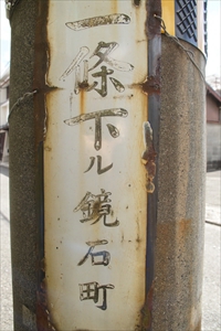 ![]() 鏡石 ![]() わずかに残る平面に近い岩の部分 ![]() 「衣笠鏡石町」の表示板 ![]() 「鏡石町」の町名板 ![]() 【参照】鏡石町(上京区)の町名板 |