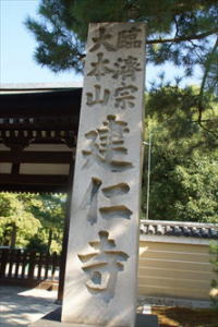 建仁寺(けんにん-じ)は、京都最古の禅寺であり、「けんねん-じ」「けんねん-さん」とも呼ばれている。山号は東山(とう-ざん)という。 京童の囃子言葉として「建仁寺の学者面、学問面」ともいわれた。歴代の住持に五山文学に名を連ねる学僧たちが輩出している。 山内に12塔頭、山外に3塔頭がある。同派寺院は全国に100カ寺ある。 臨済宗建仁寺派大本山。本尊は釈迦如来。 「ミシュラン・グリーンガイド・ジャポン1つ星観光地」(改訂第4版)に選ばれている。 ◆歴史年表 鎌倉時代、1202年、栄西を開山 にする。開基になった鎌倉幕府第2代将軍・源頼家の援助を得て、六波羅探題に近接する幕府直轄領(旧平氏館跡地、六波羅探題、四条以南、五条以北、鴨川以東、東山以西)に創建された。建仁寺の寺名は、第83代・土御門天皇の勅許により、禅寺初の年号寺院になった。当初は、真言、止観という二院を置き、天台宗別院とされた。これは、比叡山延暦寺、真言宗に配慮したためであり、建前として真言(密)、天台(止観、円)、禅門の三宗の兼学とされた。(『帝王編年記』『元亨釈書』『沙石集』) 1204年、武将・佐々木定綱は自ら車を曳き、僧堂の基礎工事に加わる。(『帝王編年記』)。僧堂、重閣講堂、真言院、止観院が建立された。 1205年、中国百丈山(江西省)を模して伽藍が竣工された。官寺の扱いになる。(『武家年代記』裏書) 1214年、比叡山を下りた道元は建仁寺に栄西を訪ねる。 1215年、旧8月、栄西が建仁寺で没する。(『沙石集』)。鎌倉・寿福寺だったともいう。 1217年、道元は明全につく。 1228年、宋より帰国した道元が住した。 1240年、済翁証救8世が入寺し、法観寺を禅寺にする。 1246年、旧6月、二階堂(講堂)が焼失した。(『百錬(練)抄』) 1247年、焼失したという。 1256年、旧7月、焼失し、荒廃する。(『一代要記』) 1258年、旧5月、東福寺開山・円爾(えんに)弁円が10世になり、仏殿、雲堂(僧堂)を復興する。(『元亨釈書』) 1259年、宋よりの11世・蘭渓道隆(らんけい-どうりゅう)の時、楊岐(ようぎ)派の禅を説き、兼宗禅から臨済禅道場に改められる。 1265年、また、蘭渓道隆により臨済禅寺になる。寺名は、「仁」を避け、「建寧寺」と改名した。 1278年、焼失する。 1305年、方丈が再建になる。 1327年、禅居庵は清拙正澄将来の魔利支天像を祀る。 南北朝時代、1334年、建武政権により京都五山の第2位の初の格付けになる。浴室を修造する。清拙正澄は十境を新成する。 1334-1335年、石梁仁恭が興雲庵を創建する。 1340年、旧10月/1341年、武将・佐々木高氏により妙法院が放火され、建仁寺の輪蔵、開山堂、塔頭・瑞法庵なども類焼する。(『中院一品記』『太平記』) 1342年、旧4月、将軍・足利尊氏により京都五山の第4位になる。 1342年、塔婆が再興された。 1342-1345年、東海竺源は大中庵を創建する。 1346年、海雲は高山慈照を開基として霊洞院を創建する。正仲は高山慈照を開基として堆雲軒を創建する。 1348年、赤松円心は大龍庵を創建する。 観応年間(1350-1352)、青山慈永は大統院を創建した。 1355年、天潤庵が焼失し、「景徳伝燈録」の板の大半を失う。 1358年、旧9月、将軍・足利義詮により京都五山の第4位になる。 1362年、中巌円月は万寿寺境内の妙喜世界を移す。 1363年、43世・青山慈永は、初の法堂を造営し、伽藍の修造も行う。 応永年間(1368-1375)、聞渓良聡が大昌院を創建する。 永和年間(1375-1379)、蘭洲良芳が清住院を創建した。 1380年、僧堂を修理する。義堂周信が住した。京・鎌倉五山の一寺になる。(円覚寺文書) 1386年、旧7月、3代将軍・足利義満により京・鎌倉五山位が決まり、建仁寺は京都五山の第3位に列せられた。(「円覚寺文書」)。ただ、延暦寺側は天台別院とした。 室町時代、最盛期に塔頭50余りあり、黄竜派、諸派の僧が集まり「学問づら」と呼ばれた。 1394年、一庵一麟が霊源院を創建した。 1397年、旧11月、焼失する。(『如是院年代記』)。一庵一麟は祖塔を修復する。 1407年、仏殿が再建される。 1410年、「建仁寺法式条々」を制定する。 1419年、「建仁寺法」「山門条々規式」を制定した。 1435年、諸塔頭を焼く。 1440年、塔頭、法観寺八坂塔の落慶法要が催される。 1442年、祖塔が修造される。 1443年、塔頭を焼失した。 1456年、足利義政は雪巌氷嵩らを高麗国に派遣し建仁寺修復の援助を請う。 1458年、諸堂が修理される。足利義政は、雪巌氷嵩らが請来した高麗蔵経を方丈で閲覧する。 1461年、足利義政の命により、建仁寺僧が五条橋上で飢餓死者の追善法要を行う。 1465年、洪水により諸堂が被災する。食事案内の沙弥喝食(しゃみかっしき)が抗議、蜂起する。 1467年、塔頭、八坂塔が炎上する。 1469年、応仁・文明の乱(1467-1477)により焼失した。再興には町衆が支援する。焼失を免れたともいう。 1480年、祖塔が修造される。 1481年、焼失している。 1488年、清住院が夜盗により焼失した。 1493年、福聚院が今熊野より移築される。 1514年、月舟寿桂により開山300年遠忌が修され、諸堂が修理される。 1521