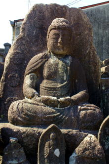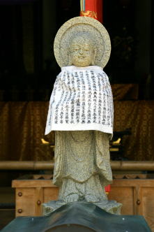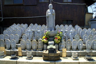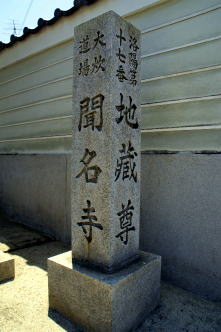 聞名寺(もんみょう-じ)は、平安時代の第58代・光孝(こうこう)天皇ゆかりの寺という。 院号を小松院という。明眼(めいげん/あけめ)地蔵は眼病にご利益がある。 時宗遊行派、本尊は阿弥陀如来坐像。 地蔵堂の本尊・明眼地蔵は洛陽第十七番地蔵尊になる。明眼地蔵は眼病平癒の篤い信仰がある。 ◆歴史年表 創建、変遷の詳細は不明。 平安時代、この地には、第58代・光孝天皇(830-887)の皇宮・小松殿(こまつどの、室町大炊御門大路 [おおいみかどおおじ] 、中京区室町通竹山町下ル道場町西側)があり、地蔵菩薩が安置されていた。 887年、光孝天皇没後、小松殿はその遺志により、天台宗の「小松寺」に改められる。その後、荒廃する。 鎌倉時代、1279年、一遍が時宗道場として開き、「小松院聞名寺」として中興したともいう。また、「大炊(おおい)道場」とも呼ばれたという。本尊に地蔵尊が安置されたという。 安土・桃山時代、天正年間(1573-1592)、聞名寺内に称名寺が移る。 1590年、豊臣秀吉の都市開発により、京極大炊御門大路の東(京極夷川)に移される。 江戸時代、1708年、宝永の大火により聞名寺、称名寺は焼失した。 その後、現在地に移転した。時宗・金光寺(七条道場)の院代(いんだい)寺院になる。一時は隆盛し、5塔頭、2末寺を数えた。 現代、2009年、念仏法要「一つ火法要」が復活する。 ◆光孝天皇 平安時代前期の第58代・光孝天皇(こうこう-てんのう、830-887)。男性。時康(ときやす)、小松帝。父・第54代・仁明天皇、母・沢子(贈太政大臣・藤原総継の娘)の第3皇子。太皇太后・橘嘉智子の寵愛を受ける。16歳で元服、上野大守、常陸太守など親王任国長官を歴任(遥任、赴任せず)。第57代・陽成天皇の廃位後、外戚関係にない藤原基経の推挙により、884年、55歳で即位した。基経を事実上の関白とし、関白の初めになった。病気になり、887年、臣籍に下っていた第7皇子・源定省(第59代・宇多天皇)を親王に復し、皇太子に立てた。 第55代・文徳天皇、第56代・清和天皇、第57代・陽成天皇の3帝に仕えた。849年、渤海国大使・王文矩は、必ず天子の位につく相であるとした。宮中行事の再興、和歌・和琴に秀でた。『古今集』に収められている。目の見えない人々のために、左女牛(さめうじ)に施設を建て保護したという。座頭の官を下賜し、検校、勾当の官に任じて庇護した。後世、天皇への報恩のために、積塔会(しゃくとうえ)が鴨川で行われた。58歳。 墓は後田邑陵(小松山陵)にある。 ◆一遍 鎌倉時代中期-後期の僧・時宗開祖・一遍(いっぺん、1239-1289)。男性。智真、捨聖(すてひじり)、遊行上人と呼ばれた。父・伊予(愛媛県)松山・水軍家系の河野通宏の次男。一族は承久の変(1221)に加わり衰微し、父は出家する。1248年、10歳で母と死別した。父の勧めで継教寺・絶縁のもとで出家し、随縁と称した。幼少より聡明だったという。1251年、13歳で師・善入とともに太宰府の浄土宗西山派証空弟子・聖達(しょうたつ)を訪ね師事した。肥前の華台にも学ぶ。智真と改める。1263年、父の死を契機に帰郷した。還俗、妻帯し家督を継ぐ。相続に絡み親族に襲われ、1271年頃、再び出家した。1271年、太宰府の聖達を訪ね、信州・善光寺で「二河白道」の喩に感得する。阿弥陀仏により救済されると確信する。伊予・窪寺に籠る。1273年、伊予国・菅生の岩屋に参籠した。1274年、妻・超一、娘・超二、従者念仏坊とともに遊行の旅に出る。四天王寺、高野山・金剛峯寺を経る。熊野権現の夢告により、一遍と名乗り、賦算の行(念仏札を配る)を始めた。妻子と別れる。1275年、熊野、京都、西海道より伊予に戻る。1279年、京都・因幡堂、善光寺を経る。信濃国の伴野/小田切の里より敬愛する空也に倣い踊り念仏を始めた。1280年、奥州、平泉を遊行した。1282年、武士に鎌倉入府を断られる。1284年、3度目になる京都を訪れた。四条釈迦堂、空也ゆかりの市屋道場などで踊り念仏を行い、人々を熱狂させた。その後、北国、西国を巡り、1289年、摂津国和田岬の観音堂(後の真光寺)で亡くなる。51歳。 一遍の号は、六字名号一遍法の感得に由る。空也の「捨ててこそ」の教えを実践し、捨聖とも呼ばれた。粗末な身なりで北は江刺、平泉から南は薩摩・大隅まで15年間諸国遊行し、各所で25万枚ともいう賦算と踊念仏を行なう。生涯にわたり寺を建てず、著作も残さず、死期迫るとわずかな経典も焼き捨てたという。一遍の時衆(時宗)は、日常の生活を臨終の時ととらえた。身辺のあらゆるものを捨て、「南無阿弥陀仏」の念仏さえ唱えれば、俗世の人々も阿弥陀仏に救われ往生できると説いた。「おのづから あひあふときも わかれても ひとりはおなじ ひとりなりけり」(『一遍上人絵伝』) ◆行快 鎌倉時代前期-中期の仏師・行快(ぎょうかい、?-?)。男性。慶派、快慶の高弟、1番弟子。1216年頃、法橋位。1219年-1220年、大和・長谷寺十一面観音像の再興造営に、快慶を補佐し光背を造った。1221年-1227年、京都・大報恩寺(千本釈迦堂)の釈迦如来坐像を製