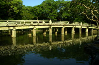 京都御苑内南端にある九条池の中島に、小社・厳島神社(いつくしま-じんじゃ)が建つ。一帯は五摂家の一つ九条家の旧邸跡で、境内は池泉回遊式庭園の一部になっていた。「池の弁天さん」とも呼ばれている。祇園女御ゆかりの社という。 祭神は宗像三女神を主祭神とする。市杵島姫命(いちきしまひめのみこと)、田心姫命(たごりひめのみこと)、湍津姫命(たぎつひめのみこと)、祇園女御を合祀している。 ◆歴史年表 創建の詳細、変遷は不明。 平安時代、平清盛(1118-1181)が母・祇園女御のために、安芸の厳島神社を築島(摂津国莵原郡)に勧請したことに始まるという。 室町時代後期、11代将軍・足利義晴(1511-1550)により、京都の細川高国邸内に移された。 江戸時代、1771年、公卿・九条道前がその邸内(現在地)に移した。以後、同家の鎮守社になる。 1788年、天明の大火により焼失した。 近代、1869年、東京遷都以後、九条家は東京に移り、当社のみが残された。 1927年、現在の社殿が改築される。 1938年、石鳥居が重要美術品に認定された。 ◆祇園 女御 平安時代後期の祇園 女御(ぎおん-にょうご、 ?-?)。詳細不明。女性。祇園社脇の水汲み女、源仲宗の妻、仲宗の子・惟清の妻ともいう。白河法皇の寵妃・法皇の下級官女として仕え寵愛を受ける。1104年頃、藤原公実の娘・待賢門院璋子を養女とし、法皇の養女として育てる。1105年、祇園社の東南に阿弥陀堂を建て住した。1111年/1109年、仁和寺内に威徳寺を建立し晩年は移る。僧・禅覚を養子とした。1113年、六波羅蜜堂で一切経供養を営む。権勢を誇るが女御宣旨は下らず祇園女御と通称され、東御方、白河殿とも呼ばれた。 白河院が、ある事件での武勲により、平忠盛の思慮深さを愛で祇園女御を贈ったという。ただ、その時すでに女御は懐妊しており、法皇は女子であれば法皇が、男児であれば忠盛の子とするとしたという。男児であったため、忠盛が育てたのが平清盛だったという。(『平家物語』巻6「祇園女御」)。また、忠盛が賜ったのは女御の妹の方であり、清盛は妹と法皇の子ともいう。女御は養母であったともいう。 ◆足利 義晴 室町時代後期の室町幕府第12代将軍・足利 義晴(あしかが-よしはる、1511-1550)。男性。幼名は亀王丸、法号は万松院。室町幕府第12代将軍。近江・岡山城(滋賀県)の生まれ。父・義澄(よしずみ)の長子/次男。生後すぐに父を失い、播磨(兵庫県)・赤松義村の庇護下に育つ。1521年、将軍・足利義稙(よしたね)は執政・細川高国に追放される。高国は義晴を将軍に擁立した。実権はなかった。1530年、従三位大納言になる。1525年、北室町柳原に幕府を造営した。高国一族の内紛から、1526年、丹波の柳本賢治らが反し、1527年、桂川の戦で細川晴元・三好元長らに大敗した。高国と近江に逃亡し、各所に移る。1532年、晴元と和睦し、同母兄・義維政権を倒した。一向一揆、法華一揆、町衆の自治によって京都に入れず、1534年、還京した。1535年、法華一揆が潰滅し、三好長慶が台頭した。1536年、京都の御所に定住する。1546年、近江に逃れ実子・義藤(義輝)に将軍を譲る。1548年、摂津江口の戦で晴元が長慶に敗れ、1550年、近江で没した。40歳。 慈照寺(東山区)に葬送された。 ◆細川 高国 室町時代後期の武将・細川 高国(ほそかわ-たかくに、1484-1531)。男性。法号は道永、常桓。父・細川政春。室町幕府管領。民部少輔、右京大夫、武蔵守を歴任。細川政元の家督を巡る争いで澄元に付き、1507年、澄之を滅ぼす。1508年、国人ともに澄元も追放する。1508年、前将軍・足利義尹(義稙)復帰により右京大夫、管領に任じられた。1521年、将軍義稙を廃し、前将軍・足利義澄の子義晴を擁立した。1526年、香西元盛の殺害によりその兄弟らが挙兵、さらに三好勝長ら、之長の孫・元長らの堺進行により敗れた。摂津国天王寺で三好元長に敗れ自刃した。48歳。 ◆九条 道前 江戸時代中期の公卿・九条 道前(くじょう-みちさき、1746-1770)。詳細不明。男性。父・九条尚実。1753年、従三位。1759年、内大臣、1769年、従一位。25歳。 ◆建築 「本殿」は、近代、1927年に再建された。切妻造、平入銅板葺。 ◆唐破風鳥居 石造の「唐破風鳥居」が立つ。室町時代作とみられている。ほかに例がないとされ、「京都三鳥居」「京都三珍鳥居」(ほかに、北野天満宮伴氏社石鳥居、蚕の社三角鳥居)の一つとされている。 平安時代、築島(摂津国莵原郡)にあったともいう。室町幕府第12代将軍・足利義晴(1511-1550)が上洛の際に、武将・細川高国(1484-1531)邸内に移したという。江戸時代中期、1771年、公卿・九条道前(1746-1770)が、徳川幕府に請いその邸内(現在地)に移した。京都所司代交替の際には、鳥居を検査する定めがあったという。近代、1938年に重要美術品に認定された。 最上部の横木の笠木と、それに付く下の島木が共に唐破風になる。両柱は外へやや開く。明神鳥居を基本にして唐破風に仕立てたという。ただ、笠木、島木に反り増しはなく、笠木、島木ともに鼻は水切になる。花崗岩製