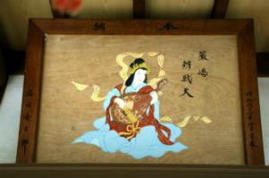 ![]() コンクリート小橋 ![]() 唐破風鳥居 ![]() 唐破風鳥居、最上部横木の笠木とその下に付く島木が共に、中央がやや上に膨らむ唐破風になっている。 ![]() ![]() 本殿 ![]() 本殿、「弁財天」の扁額 ![]() ![]() ![]() ![]() ![]() 弁財天の絵馬 ![]() 弁財天の絵馬 ![]() ![]() 九条池(拾翠池、勾玉池)に架かる高倉橋 ![]() サルスベリ |