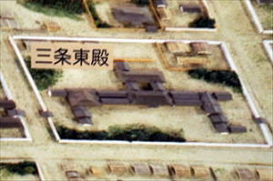 ![]() 「三条東殿遺址」の碑、新風館北側 ![]() 【参照】平安時代の三条東殿の復元図(京都市平安京創生館、展示パネルより) 平治の乱の主な登場人物