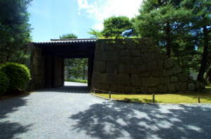 ![]() 二条城内西に復元された「旧二条城の石垣」