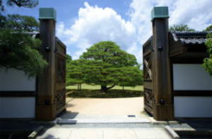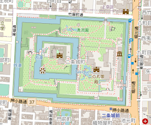 二条城(にじょう-じょう)は、回字形平城(かいじがた-ひらじろ)であり、正式には「元離宮二条城」、「旧二条元離宮(二条城)」と呼ばれる。かつて、白い多聞塀(土塀)が城の四周を取り囲んでいたことから「霞城(かすみじょう)」とも呼ばれた。 徳川家康の二条城築造の意図は、天皇の監視と御所の権勢にあったといわれている。神泉苑を取り込んだのも、王権剥奪の意図があったという。 市街地であるにもかかわらず、南の神泉苑の豊かな湧水により、現在も城の外堀、内堀の水は満されている。敷地面積27万5000㎡、建物面積7300㎡の広大な面積を有している。城域は東西500m、南北400mある。 二の丸御殿など6棟の建物が国宝、東大手門など22棟が重文に指定されている。二の丸御殿の障壁画954点も重文指定され、二の丸庭園は国の特別名勝指定になる。 1994年、城内全域がユネスコの世界文化遺産・史跡に登録された。「ミシュラン・グリーンガイド・ジャポン 2つ星観光地」(改訂第4版)に選ばれている。アメリカ合衆国の日本庭園専門誌"Sukiya Living Magazine, The Journal of Japanese Gardening"の「しおさいプロジェクト」「日本庭園ランキング(数寄屋生活空間)」に、2006年-2007年に清流園和楽庵は連続して第6位に選ばれている。2003年に二の丸庭園は第6位に選ばれた。二条城・二条城二之丸は、「美しき日本-いちどは訪れたい日本の観光遺産」(日本交通公社、1999年)の一つに認定された。 ◆歴史年表 平安時代、この地は、神泉苑境内北の一部に含まれ、平安京大内裏域東南にあり、一部に冷泉院跡地になっている。 安土・桃山時代、1587年、城域北の内野(うちの)に、豊臣秀吉により聚楽第が造営されている。 1601年、旧5月、神泉苑北辺一帯の町家5000軒に立ち退きが命じられた。徳川家康は二条城築城に着手する。 1602年、旧5月、家康は西国大名に平城の二条城築城(手伝普請)を命じた。将軍上洛時の居城として、二の丸御殿が築造される。予定地の家屋数千軒が立ち退きになり、南の神泉苑の池を堀として転用したという。京都守護、朝廷監視の政治的な役割も担ったといわれている。総奉行は京都所司代・板倉勝重による。大工は中井正清らによる。当初は、「内府(家康)屋形」「二条亭」「二条新御所」「二条(京都)新屋敷」とも呼ばれた。現在の城域の東3分2の方形部分にあたる。城の外周には、京都所司代、京都町奉行所、京都代官所など幕府の重要機関、大名の京屋敷などが置かれていた。 江戸時代、1603年、本丸御殿(二の丸御殿)、池泉庭が完成する。旧3月、家康は入城する。旧4月、家康は伏見城において将軍宣下を受けた。方形、一重堀に囲まれた二条城に勅使を迎え、3日間にわたり征夷大将軍拝賀の礼と、後に就任の祝宴を行う。 1605年、2代・秀忠が将軍宣下を受け、二条城から拝賀の礼に赴く。3代・家光まで拝賀の礼が城内で行われた。 1611年、旧3月、家康は城内で豊臣秀頼と会見した。この時、加藤清正が淀殿を説得し実現に貢献した。家康は、この時、豊臣家を滅ぼすことを決意したともいう。城内で謁見したポルトガル人に貿易を許可している。 1614年、旧10月、大坂方の二条城焼き討ち計画が、板倉勝重により阻止された。大坂冬の陣の際に、城は徳川幕府軍の本陣になり軍議が開かれた。旧11月15日、当城より家康、伏見より秀忠の軍勢は大坂に出陣した。大坂冬の陣が開始される。幕府が求めた秀頼追討の綸旨を朝廷は拒否する。旧12月25日、大坂冬の陣が和議になり、家康は二条城に凱旋した。 1615年、旧4月27日、大坂夏の陣が始まる。旧5月、大坂夏の陣の際に、家康は当城より、秀忠は伏見より出陣した。家康は二条城に凱旋する。大坂町奉行・水原吉一の処刑後、首級が二条城西門に晒された。旧5月8日、大坂城は落城した。5-7月、天台宗、真言宗、浄土宗、高野衆などの議論相次ぐ。旧7月17日、2代将軍・秀忠は城に入り「禁中並公家諸法度」を発布した。国政を幕府に委ねることを示した。大御所・家康、前関白・二条昭実も署名する。旧8月、家康は二条城を発し駿府に帰る。(1616年旧4月、家康は駿河城で亡くなる。) 1619年、2代将軍・秀忠は、娘・和子を第108代・後水尾天皇に入内させるために城の改修工事を行う。 1620年、旧5月、和子は入第の宿所とした二条城に入る。旧6月、和子は御所に入る。 1623年、徳川家光上洛に際し、三笠閣が建造される。秀忠、家光が入洛し、二条城に入城した。旧7月、二条城の西長屋が崩壊した。旧8月、家光は将軍宣下を受け、二条城から参内し拝賀の礼に赴く。旧閏8月、暹羅(シャム)国使節が二条城大広間で秀忠に拝謁する。 1624年、旧1月より、後水尾天皇行幸に際し、3代将軍・家光は大規模な改修・増築(寛永度造営)を行い、西に拡大し現在の姿が造られた。作事は小堀遠州による。本丸の増築、二の丸、五層の天守などが造営される。伏見城から西南隅に天守を移し、二の丸にあった天守は淀城に移される。庭園も整備された。なお、伏見城の破却が終了した。この年以後、