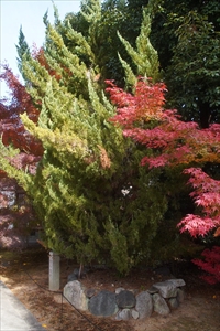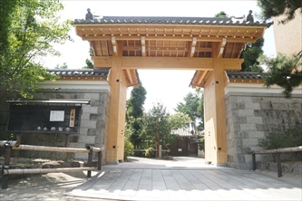 堀川通に面した興聖寺(こうしょう-じ)は、古田織部と関わり深く、「織部寺(おりべ-でら)」ともいわれている。「西陣興聖寺」ともいう。山号は円通山という。 臨済宗興聖寺派の本山、本尊は釈迦如来。 ◆歴史年表 安土・桃山時代、文禄年間(1592-1596)、この地に虚応円耳(こおう-えんに)が大昭庵を結んだことに始まるという。 江戸時代、1603年、第107代・後陽成天皇の勅、茶人・古田織部の願により建立された。虚応円耳を開山とし、「円通山興聖寺顕蜜自得禅寺」と称した。台密を兼学した。 1629年、第108代・後水尾天皇の勅願所になる。(『雍州府志』)。勅願寺一派の本山になる。 1689年、現在の仏殿が建立された。 1701年、第113代・東山天皇が常紫衣を勅許とする。五山第一の綸旨を与える。(『坊目誌』)。一時は隆盛になり数十カ寺(末寺52寺とも)を有したという。 1788年、天明の大火により焼失した。(『翁草』)。以後、衰微する。 近代、1887年、臨済宗相国寺派に合流した。 現代、1948年、臨済宗興聖寺派本山として独立する。 ◆虚応 円耳 安土・桃山時代-江戸時代前期の僧・虚応 円耳(こおう-えんに、1559-1619)。詳細不明。男性。俗姓は斎藤、別号は無染。京都の生まれ。妙満寺・日重に学び、大応寺を開く。臨済宗になり、1603年、古田織部に幾度と請われ興聖寺を創建した。1615年、上野・長楽寺の天海より台密の葉上(ようじょう)流を継ぐ。著『心経円耳註』など。61歳。 天皇家から支持を受けた。奈良写経をもととしたとされる『一切経』を蒐集した。 ◆古田 織部 安土・桃山時代-江戸時代前期の武将・茶人・古田 織部(ふるた-おりべ、1543/1544-1615)。男性。名は重然(しげなり)、通称は左介、号は印斎、景安、古左、古織(こしょく)、法名は金甫宗室。美濃(岐阜県)の生まれ。父・古田重定。初め、美濃の守護大名・土岐氏に属した。1560年、織田信長の美濃平定の際に、父とともに信長に従う。播州攻略に活躍した。1582年、信長の死後、豊臣秀吉に従う。山崎の戦に加わる。この頃より千利休と親交した。1583年、賤ヶ岳の戦、1584年、小牧・長久手の戦い、1585年、紀州根来攻め、四国征伐などに出陣した。秀吉が関白に任じられ、織部は従五位下織部正(かみ)になる。秀吉に山城国西ヶ岡に領地を与えられた。1587年、九州征伐、1590年、小田原征伐に従い、1592年、文禄の役で肥前名護屋に下る。秀吉によりわび茶を武家の茶に改めるように命じられ、書院式茶道を完成し諸大名に伝授した。秀吉の最晩年に、御咄衆の1人に加えられる。1591年、利休の堺蟄居を命ぜられた際に、細川三斎(忠興)と淀の舟本で見送る。1594年頃、小堀遠州が弟子入りする。慶長年間(1596-1615)初年、茶の湯名人と評される。1598年、秀吉没後に、西ヶ岡の地を嫡男・重広に譲り、伏見の屋敷で茶事に専念した。徳川家康に仕え、利休に茶を学ぶ。1600年、関ヶ原の戦で徳川方に付く。常陸・佐竹義宣を東軍に帰属させる工作を行う。1603年より、小堀遠州に茶の湯を伝授した。(慶長伝授)。1608年、大坂城で織田有楽斎とともに秀頼に献茶した。1610年、江戸城で2代目将軍・秀忠に台子を伝授する。京洛での放火事件に織部の茶坊主が関与し、1614年、大坂冬の陣で徳川方に加担し、負傷した。1615年、大坂夏の陣では、恩ある豊臣方に通じたとして、一族とともに捕えられた。伏見木幡(こばた)の屋敷内で抗弁せず自刃した。著『茶湯伝書』。72/73歳。墓は大徳寺塔頭・三玄院(北区)、興聖寺(北区)にもある。 後に利休七哲の一人になる。織部流茶道の祖。破格の茶といわれ、茶の湯を変革した。利休の茶を改め、武士好みの茶道、大名茶を確立する。作意は織部好みと呼ばれた。茶室に多窓形式の興福寺八窓庵、藪内家燕庵、露地、形の歪む「へうげもの(沓型茶碗)」の織部焼、灯籠などを残した。切腹後は「天下一の宗匠」などと称された。門弟に徳川秀忠、本阿弥光悦、小堀遠州などがある。 ◆藤堂 高虎 室町時代後期-江戸時代前期の武将・大名・藤堂高虎(とうどう-たかとら、1556-1630)。男性。近江国(滋賀県)の生まれ。父・土豪・藤堂虎高の次男。浅井長政の足軽、1570年、姉川の戦い、1573年、小谷城の戦いに参戦、浅井氏の旧臣・阿閉貞征、磯野員昌、織田信澄に仕える。1576年、羽柴秀吉の弟・秀長に仕える。1581年、但馬国の土豪を討ち、所領を加増、鉄砲大将になる。秀長の中国攻め、賤ヶ岳の戦い、1585年、四国攻め、紀州征伐にも功あり加増、大名になった。1585年、紀州征伐に加わる。猿岡山城、和歌山城の普請奉行に任命される。1587年、九州征伐で救援。この頃正五位下・佐渡守に叙任する。1589年、北山一揆鎮圧のため赤木城を築城した。1591年、秀長死後、豊臣秀保に仕え、1592年-1593年、文禄の役に参戦、1595年、秀保没後、出家し高野山に上る。秀吉召還により還俗、伊予国板島の大名になる。1597年-1598年、慶長の役に参戦、大洲城を加増。板島丸串城の改修を行う。1600年、徳川家康の会津征伐に従い、岐阜城攻め、関ヶ原本戦に加わる。功によ