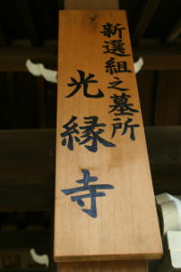 四条大宮の南西、綾小路通に面して光縁寺(こうえん-じ)がある。新撰組隊士局中法度違反とされ切腹、粛清された元隊士、隊士が多く眠っている。 山号院号は、満月山普照院(まんげつざん-ふしょういん)という。 浄土宗、知恩院末寺、本尊は阿弥陀如来。 ◆歴史年表 創建、変遷の詳細は不明。 安土・桃山時代、天正年間(1573-1592)、創建ともいう。 江戸時代、1613年、即玄が開いたともいう。 1788年、天明の大火により本堂、山門を焼失した。 1819年、現在の本堂が再建された。 1846年、現在の山門が再建される。 近代、1898年、新撰組隊士の墓が立てられた。 ◆即玄 江戸時代の浄土宗の僧・即玄(?-? )。詳細不明。1613年、光縁寺を開いたという。 ◆山南 敬助 江戸時代後期の武士・山南 敬助(やまなみ/さんなん-けいすけ、1833-1865)。詳細不明。男性。仙台藩を脱藩し江戸に出たともいう。小野派一刀流の免許皆伝、北辰一刀流の千葉周作門人。近藤勇の天然理心流剣術道場・試衛館に、他流試合を挑み敗れ、以後、近藤に従う。1863年、清河八郎の浪士組に近藤らと加わる。清河の江戸帰還に伴い、芹沢鴨、近藤らと京都に残る。その後、芹沢と袂を分かった近藤派の副長に就く。1863年、呉服商・岩城升屋事件で浪士を撃退し功を上げる。1863年、八月十八日の政変で御所警固、長州系浪士らを斬る。その後、壬生浪士組3番手の総長に就く。その後、表舞台から消え、1865年、新撰組を脱走、大津で親しかった沖田総司により捕縛される。1865年、旧2月23日、切腹、介錯は沖田が務めた。33歳。 光縁寺(下京区)に葬られた。 ◆伊東 甲子太郎 江戸時代後期の御陵衛士(高台寺党)盟主・伊東 甲子太郎(いとう-きねたろう/かしたろう、1835-1867)。男性。名は武明、通称は大蔵、摂津、号は東山、変名は宇田兵衛。常陸(茨城県)生まれ。父・志筑(しづく)藩士・鈴木忠明の長男、母・こよ。水戸藩士・金子健四郎に神道無念流剣術、水戸学を学び勤王思想に傾倒する。江戸の旗本・伊東精一/誠一郎に北辰一刀流を学び、跡目を継ぎ婿養子になる。1864年、藤堂平助の仲介で新撰組に加盟し、参謀・文学師範になる。その後分離し、1867年、戒光寺の湛然長老の肝煎りにより御陵衛士が組織された。勤皇派の伊東ら15人が新撰組を脱退し御陵衛士に参加した。山陵奉行・戸田大和守忠至の配下に入る。伊東は御陵衛士(高台寺党)盟主になり、薩摩と連携した。1867年、新撰組により七条油小路で粛清され、斬殺された。(油小路事件)。33歳。 国学・歌道を好み剣術に長けた。 供養塔が本光寺(下京区)に立つ。墓は戒光寺(東山区)にある。 ◆大石 造酒蔵 江戸時代後期の武士・大石 造酒蔵(おおいし- みきぞう、?-1866)。詳細不明。男性。父・大石捨次郎。新撰組隊士・大石鍬次郎(人斬り鍬次郎)の実弟。一橋家家臣。1862年、家督を相続した。新撰組の今井祐三郎に祇園石段下で斬られたという。病死ともいう。 光縁寺(下京区)に墓がある。施主は鍬次郎。 ◆松原 忠司 江戸時代後期の新選組隊士・松原 忠司(まつばら-ちゅうじ、1835?-1865)。詳細不明。男性。父・播磨国小野藩藩士。安政年間(1854-1860)、「徘徊御免」になり、大坂で関口流柔術(北辰心要流、不遷流とも)の道場を開いたという。1863年、壬生浪士組に入隊、八月十八日の政変で仙洞御所前、禁裏御所南門の警備し、今弁慶の異名をとる。1864年、池田屋事件で戦功を挙げる。1865年、新撰組四番組組長・柔術師範。病死、切腹、銃殺ともいう。30歳?。 墓は光縁寺(下京区)にある。 ◆山南 敬助 江戸時代後期の新撰組副長・総長・山南 敬助(やまなみ/さんなん-けいすけ、1833-1865)。詳細不明。男性。陸奥国(宮城県)の生まれ。仙台藩を脱藩し江戸に出たという。小野派一刀流の免許皆伝、北辰一刀流の千葉周作門人。近藤勇の天然理心流剣術道場・試衛館での試合で近藤に敗れ、以後、近藤に従う。1863年、清河八郎の浪士組に近藤らと参加し上洛する。尊攘派の清河の江戸帰還に反し京都残留、壬生浪士組に参加、隊内の内部対立では、近藤派に属し副長に就任した。旧7月、大坂・呉服商・岩城升屋で浪士を撃退した。旧8月、八月十八日の政変に出動、旧9月の隊内の芹沢ら粛清後、総長に就く。1865年旧2月、江戸へ脱走し、大津で旧知の沖田総司に捕縛され、屯所(旧前川邸)に連れ戻された。その詳細不明。伊東甲子太郎との軋轢、近藤、土方との尊王攘夷の齟齬ともいう。1865年旧2月23日、旧前川邸西側坊城通に面した一室で切腹。介錯は山南の希望により沖田が務めた。33歳。 墓は光縁寺(下京区)にある。 ◆田中 寅蔵 江戸時代後期の新選組隊士・田中 寅蔵(たなか-とらぞう、1841-1867)。詳細不明。男性。寅三。加賀国(石川県)の生まれ。加賀藩脱藩し、1864年頃、新撰組に入隊。撃剣師範になる。伊東甲子太郎の御陵衛士を拒絶され、本満寺に隠れた。攘夷論を唱え切腹になる。26歳。 墓は光縁寺(下京区)にある。 ◆中島 来章 江戸時代-近代の画家・中島 来章(なかじま-らいしょう、1796-1871)。詳細不明。男性。近江(