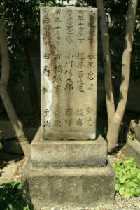 ![]() ![]() ![]() ![]() ![]() 寺紋「丸に右離れ三つ葉立葵」 ![]() ![]() ![]() ![]() ![]() 歴代の墓 ![]() 山南敬介藤原知信の墓(元治2年2月23日) ![]() 大石造酒蔵源守仲の墓(慶応2年2月5日) ![]() 施山多喜人源泰朝(慶応元年6月21日)、石川三郎源義元(慶応元年6月21日)、松原忠司藤原誠忠(慶応元年9月1日)、桜井勇之進平盛房(慶応元年12月12日)、河合耆三郎吉輝(慶応2年2月12日)、小川信太郎平国行(慶応2年2月18日、柴田彦三郎忠輿(慶応2年6月23日)、市橋謙吉藤原義次(慶応2年10日7日)、田内知源重次(慶応3年1月10日)、田中寅三菅原正久(慶応3年4月15日)、矢口健一郎藤原定孝(慶応3年4月29日)、富川十郎藤原政行(慶応3年6月14日)、中村五郎藤原政常(慶応3年6月14日)、佐野七五三之助藤原重之(慶応3年6月14日)、茨木司藤原信忠(慶応3年6月14日)、加藤羆藤原忠徳(慶応3年6月14日)。 *墓石にあるもののみ、年月日は光縁寺の資料による。 ![]() 眞明院照誉貞相大姉(慶応3年4月26日) ![]() 江戸時代-近代の画家・中島来章(なかじま らいしょう、1796-1871)の墓 |