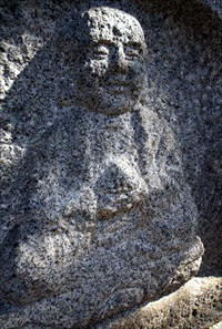 七番町(しちばん-ちょう)の福勝寺(ふくしょう-じ)は、「桜寺(さくら-でら)」、「瓢箪寺(ひょうたん-でら/ひさご-でら)」とも呼ばれている。山号は竹林山(ちくりん-ざん)という。 真言宗善通寺派、本尊は薬師如来。 本堂脇壇の聖観世音菩薩は、洛陽三十三観音巡礼第29番札所の札所本尊。峰薬師は、京都十二薬師霊場会第6番札所の札所本尊。京の通称寺霊場10番、瓢箪寺。 病気平癒、夫婦円満、融通、商売繁盛、現世利益、開運出世などの信仰がある。 ◆歴史年表 創建、変遷の詳細は不明。 平安時代?、空海(774-835)が河内国古市郡中村(大阪府羽曳野市)に創建したという。(『坊目誌』)。その後、衰微する。 鎌倉時代、正嘉年間(1257-1259)、醍醐寺・覚済により油小路五条坊門(下京区)に移された。その後、京中を移転する。 室町時代、応仁・文明の乱(1467-1477)で荒廃した。 安土・桃山時代、豊臣秀吉(1536/1537-1598)が武運を祈願し、千成瓢箪を寄進した。戦勝の度に千成瓢箪を旗印に頂いた。秀吉は、天下統一後に自作の木像を当寺に納め、寺領を寄進したという。以来、「瓢箪寺」「瓢寺(ひさごでら)」とも呼ばれる。 第107代・後陽成天皇(在位:1586-1611)の勅願所になる。 江戸時代、1701年、焼失する。 その後、寺町通丸太町下ル(中京区)、出水通六軒町(上京区)を経て、現在地(出水通千本西入ル)に移された。 第111代・後西天皇(在位:1655-1663)は勅願寺とする。「観世音菩薩」の名号と紫宸殿の左近の桜の分木を分栽し当寺に移植した。以後、「桜寺」の別称が生まれた。 現代、2005年、「平成洛陽三十三所観音」が復興された。 2012年、平安時代に始まったという京都十二薬師霊場めぐりが復活する。 ◆空海 奈良時代-平安時代前期の真言宗の開祖・空海(くうかい、774-835)。男性。弘法大師。讃岐国(香川県)の生まれ。父・豪族の佐伯田公(義通)、母・阿刀氏。788年、15歳で上京し、母方の叔父・阿刀大足に師事し儒学を学ぶ。791年、18歳で大学明経科に入るが、中途で退学し私渡僧(しどそう)として山岳修行を始め四国の大滝岳や室戸崎などで山林修行した。797年、『聾瞽指帰(ろうこしいき)』を著す。798年、槙尾山寺で沙弥になり、教海と称する。804年、東大寺戒壇院で具足戒を受ける。遣唐使留学僧として唐へ渡り、805年、長安・青竜寺の恵果(けいか)により両界、伝法阿闍梨の灌頂を受ける。806年、当初の20年の義務期間を2年に短縮して帰国、多くの経典、密教法具などを持ち帰る。入京できず太宰府・観音寺に住した。809年、入京を許される。810年、高雄山寺(神護寺)を経て、811年、乙訓寺に移り、約1年間任に当たった。別当になる。812年、乙訓寺を訪れた天台宗開祖・最澄は、空海と会っている。その後、空海は高雄山で最澄らに金剛界結界灌頂を行った。後、二人は決裂し、断絶する。813年、東大寺別当、819年頃/818年、高野山を開く。822年、東大寺に灌頂道場(真言院)を開く。823年、東寺を真言密教の道場にした。824年、高雄山寺を神護寺と改名する。神泉苑で祈雨の修法を行う。827年、大僧都となる。828年、綜芸種智院を創立した。832年、高野山で万灯会、834年、正月、宮中中務省で後七日御修法を営む。830年、『秘密曼荼羅十住心論』を著す。高野山で亡くなり、東峰に葬られた。62歳。 ◆恵果 中国唐代の密教僧・恵果(えか/けいか、746-806)。男性。姓は馬。京兆府昭応・陝西(せんせい)省の生まれ。長安の青龍寺の曇貞(どんてい)、大興善寺の不空三蔵(ふくう-さんぞう)に師事し密教を学ぶ。代宗の帰依を受け、内道場の護持僧になり、青龍寺の東塔院に住した。徳宗(とくそう)、順宗(じゅんそう)と三代の皇帝の帰依を受け「三朝の国師」と仰がれた。門下に義明(ぎみょう)、義円(ぎえん)らを輩出した。805年、門人の空海は青龍寺で恵果から金剛界、胎蔵界の灌頂を受け、付法の弟子になった。恵果没後、空海は恵果追悼の碑文「大唐青竜寺故三朝国師碑」を書き、帰国して真言宗を開いた。日本の真言宗では、恵果は「真言付法の八祖」中の第七祖になる。著『十八契印(げいいん)』など。60歳。 ◆覚済 鎌倉時代前期-後期の僧・覚済(かくぜい、1227-1303)。男性。山本僧正、峰僧正。父・中山兼季(かねすえ)。真言宗醍醐寺の源運らに師事し、1248年、金剛王院の実賢により灌頂をうける。正嘉年間(1257-1259)、福勝寺が再建される。醍醐寺座主、80世・東寺長者、1293年、45世・醍醐寺座主に再任された。著『秘鈔口決』など。77歳。 金剛王院流の一派山本流の祖。 ◆中山玄亭 江戸時代後期の医者・中山玄亭(?-1779)。詳細不明。 墓は福勝寺(上京区)にある。 ◆古高俊太郎 江戸時代後期の攘夷派志士・古高俊太郎(ふるたか/こたか-しゅんたろう、1829-1864)。男性。湯浅喜右衛門。近江国(滋賀県)の生まれ。父・大津代官所の手代・古高周蔵、母・公家・広橋家家来の娘。父が山科毘沙門堂門跡従者になり京都へ移住した。俊太郎も門跡近習になる。烏丸光徳に和歌を学び、公家と交流した。尊皇攘夷の梅田雲浜に入門し、勤王志士と知り合う