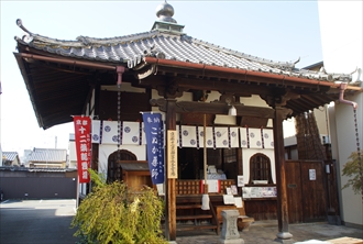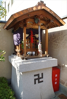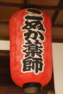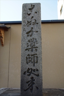 ◆薬師町 最盛期には、境内は大黒町二条通一帯を有していた。付近に薬市、夜店などが立って栄えた。この名残りとして現在も、二条通に薬問屋、漢方薬店が多く、境内の西に薬師町、薬屋町の町名も残されている。かつて薬師院の正門がこの町に開いており、薬師町と付けられたという。