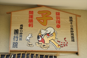 善行院(ぜんぎょう-いん)は、妙顕寺の東北に位置する。「西陣の妙見宮」「西陣の妙見さん」と呼ばれている。山号は日洋山という。莚師法縁(日莚[1608-1681]を祖に仰ぐ法脈)の一つになる。 日蓮宗京都十六本山の大本山・妙顕寺の塔頭の一つ。本尊は一塔両尊。 洛陽十二支妙見めぐり第1番札所、子(ね、北)を祀る。江戸時代には、洛陽二十八宿妙見の12番札所になっていた。 商売繁盛、眼病平癒などの信仰がある。 ◆歴史年表 創建、変遷の詳細は不明。 室町時代、1466年、恵眼院日富上人により建立されたという。 江戸時代初期、1860年、妙顕寺山内に一堂を建立し、御所内の清涼殿より第111代・後西天皇が篤く信仰した妙見尊を遷す。 近代、1868年、神仏分離令後の廃仏毀釈により洛陽十二支妙見めぐりが衰退した。 現代、1986年、京都市内の日蓮宗寺院を中心にした「洛陽十二支妙見会」により洛陽十二支妙見めぐりが復活する。 2003年、妙見堂は建て替えられる。 ◆日富上人 室町時代中期の日蓮宗の僧・日富上人(?-1367)。詳細不明。恵眼院。1466年、善行院を開山(勧請開山?)したという。 ◆後西天皇 江戸時代前期の第111代・後西天皇(ごさい-てんのう、1637-1685)。男性。名は良仁(ながひと)、幼称は秀宮。父・第108代・後水尾天皇、母・逢春門院(ほうしゅんもんいん)藤原隆子(櫛笥隆政の娘)の第8皇子。養母・東福門院源和子。1647年、当初は、叔父・高松宮好仁の遺跡を相続し、明子女王を室にした。桃園宮、花町宮と称した。1654年、異母兄・第110代・後光明天皇の死去により、同天皇の養子・識仁(さとひと)親王(第112代・霊元天皇)が生後間もないため、公家らが反対した。そのため、中継ぎとして践祚した。1656年、即位する。父・後水尾上皇が院政を行う。1657年、明暦の大火、1661年、御所炎上により近衛基熙邸を仮御所にした。そのほか諸国での地震、風水害が相次ぎ、幕府は退位を迫る。この朝廷への圧力には、高家の吉良義冬、義央(上野介)が関与したともいう。1663年、識仁親王(霊元天皇)に譲位した。49歳。 陵墓は月輪陵(東山区)にある。 ◆本尊など ◈「一塔両尊(題目宝塔・釈迦如来・多宝如来)」・四士像(安立行菩薩・浄行菩薩・上行菩薩・無辺行菩薩)」の合掌印を安置している。 ◈「祖像(説法像)」を安置する。 ◈妙見堂の「妙見尊」は、かつて御所の清涼殿に安置されていた。江戸時代前期、1860年に、第111代・後西天皇の信仰篤く、天皇は日々祈願していたという。 天皇には、法華経により祭祀するようにという霊夢があった。妙顕寺山内に一堂を建立し、遷して安置したという。このため、「日本唯一天拝の妙見大菩薩」「妙見様」と呼ばれている。妙見菩薩立像は、鎧を着て右手に剣を構え、宝冠を被る。 十二支子(ね)として黄金色の鼠(48㎝)が安置されている。 ◆洛陽十二支妙見めぐり 洛陽十二支妙見めぐりは、奈良時代以来のもので、京都御所紫宸殿を中心に、十二支の方角にそれぞれ妙見宮を祀った。これらを順番に巡り、福寿開運などを祈願した。妙見菩薩は北極星、北斗七星を神格化しており、宇宙万物の霊気を司る霊験あらたかな菩薩とされている。鎮宅霊符神、玄武神として鎮護国家の守り本尊とされた。 江戸時代には、貴族から庶民にまで広く信仰される。江戸時代前期、能勢では妙見信仰が隆盛になり、目の神、水商売の神として信仰された。江戸時代中期には、御所を中心にした妙見めぐりが盛大になり、江戸時代後期、文政年間(1818-1830)に、洛陽二十八宿妙見が登場した。 近代、1868年に、神仏分離令後の廃仏毀釈により衰退する。1986年に、京都市内の日蓮宗寺院を中心にして「洛陽十二支妙見会」が生まれ、干支めぐりが復活する。参拝の順番は、自分の干支からでもその年の干支からでもよいという。 ◆文化財 「永照講」の扁額は、江戸時代の洛陽二十八宿妙見の12番札所当時のものになる。 ◆墓 江戸時代前期-中期の画家・尾形光琳(おがた-こうりん、1658-1716)の菩提寺だった。江戸時代後期、1819年に画家・俳人・酒井抱一(さかい-ほういつ、1761-1829)は、光琳の100回忌に際して本行院跡(現・妙顕寺の塔頭・善行院の地)に光琳の墓を建立した。 現代、2015年6月2日に、光琳300回忌記念として光琳の元墓地に、67世・龍顕院日正により顕彰碑が立てられた。 ◆年間行事 星祭(2月節分)、お火焚(11月第3日曜日)、年越水行祭(12月31日)。 妙見宮月例祭(月並祭)(毎月1日、15日)。 *年間行事は中止・日時・内容変更の場合があります。 *年号は原則として西暦を、近代以前の月日は旧暦を使用しています。 *参考文献・資料 『京都御朱印を求めて歩く札所めぐりガイド』、『京の福神めぐり』 、『日蓮宗寺院大鑑』、ウェブサイト「レファレンス協同データベース」、ウェブサイト「コトバンク」 ![]() ![]() ![]() ![]() ![]() ![]() ![]() ![]() |