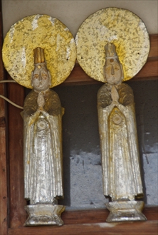 脇侍像は室町時代初期作の日光菩薩立像(像高6寸6分、身丈6寸)、月光菩薩立像(同)。