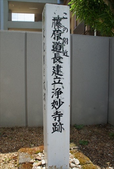 木幡小学校の西門脇に、「この附近 (この-ふきん)藤原道長建立(ふじわら-みちなが-こんりゅう)浄妙寺跡(じょうみょう-じ-あと)」の標が立てられている。 平安時代から室町時代に、藤原北家の菩提寺である浄妙寺が宇治市木幡(こはた)にあり、木幡寺とも呼ばれていた。小学校敷地の東に「ジョウメンジ墓」と通称される墓地があり、古くより浄妙寺との関わりが指摘されていた。 ◆歴史年表 創建、変遷の詳細は不明。 平安時代、藤原北家の墓地は木幡の地に営まれた。 1004年、陰陽師・安倍晴明、賀茂光栄により「木幡三昧堂(浄妙寺)」堂舎の位置が定められる。(『御堂関白記』) 1005年、藤原道長により、父母、藤原基経以下、藤原氏一門の菩提を弔うために浄妙寺が建立される。道長は頻繁に木幡に足を運ぶ。本堂の法華三昧堂が建てられる。康尚作の普賢菩薩が安置された。寺号扁額、鐘銘は平安時代の三蹟の一人能筆家・藤原行成が書いたとされる。10月19日、供養がおこなわれる。以後、寺は摂関家墓所を守る寺として繁栄した。 1007年、多宝塔が建立され、釈迦、多宝二仏を本尊にした。普賢、文殊、観音、勢至の4菩薩が安置された。方形の三昧堂(法華三昧堂)と多宝塔は隣接して建てられ、この頃、南門、西門、鐘楼、僧坊、橋殿なども新たに整備された。平安時代に、浄妙寺は平等院とともに摂関家の重要寺院にされた。 1020年、無量寿院阿弥陀堂が建立される。 鎌倉時代以降、別当職は聖護院宮家に移り、寺運は次第に衰微する。 室町時代、1462年、徳政一揆により御堂、木幡執行坊が焼失した。(『碧山日録』)。以後、廃絶したとみられている。 近代、1937年頃、宇治市木幡御蔵山西南麓の茶畑から浄妙寺に関わるとみられる「青磁水注」が単独で出土した。 1941年、林屋辰三郎は論文「藤原道長の浄妙寺について」中で、浄妙寺の推定場所として現在地名を挙げる。 現代、1967年、小学校建設に伴う発掘調査により、浄妙寺三昧堂の方形基壇、川跡が発見される。 1990年、発掘調査により浄妙寺の三昧堂跡、多宝塔跡とみられる遺構が確認される。 2003年-2004年、校庭改修工事に伴い発掘調査が行われる。平安時代-鎌倉時代の築地跡、溝跡などが見つかる。 ◆藤原道長 平安時代中期-後期の公卿・藤原道長(ふじわら-の-みちなが、966-1028)。男性。御堂殿、法成寺殿。父・藤原氏北家の関白・太政大臣・藤原兼家、母・藤原中正の娘・時姫の5男。幼少期を東三条殿で過ごした。986年、父・兼家が第66代・一条天皇の摂政になり、987年、従四位から従三位になる。左大臣・源雅信(宇多源氏)の娘・倫子(正妻)と結婚する。988年、左大臣・源高明(醍醐源氏)の娘・明子(本妻)と結婚した。991年、権大納言に任じられる。995年、兄の関白道隆・道兼が相次ぎ疫病により没し、道隆の子・内大臣・伊周(これちか)と後継争いをする。姉・詮子(東三条院)の支援により内覧、右大臣、氏長者になり政権の首座に就く。996年、伊周の失脚により左大臣に昇る。1000年、長女・彰子が一条天皇の中宮として後宮に入り、一帝二后の制を始めた。1005年、祖先供養のために、宇治木幡に法華三昧堂(木幡寺、浄妙寺)を建てる。1012年、2女・妍子(よしこ)を第67代・三条天皇の中宮とした。1016年、彰子が産んだ外孫・敦成親王(第68代・後一条天皇)の即位に際し、道長は1年ほど摂政に就く。1017年、摂政を嫡子・頼通に譲り、実権は握り続ける。従一位、太政大臣になる。皇太子・敦明親王(三条天皇第1皇子)の辞退を図り、彰子の産んだ敦良親王(第69代・後朱雀天皇)を皇太弟とした。1018年、太政大臣を辞した。娘・威子が後一条天皇の中宮、その同母妹・嬉子が皇太弟(後朱雀天皇)の妃になる。道長は「望月の歌」「この世をばわが世とぞ思ふ望月の欠けたることのなしと思へば」(『小右記』)と詠む。1019年、院源を戒師とし出家し、行観(すぐに行覚に改め)と称した。1020年、篤く仏教に帰依し、土御門殿の東に阿弥陀堂(無量寿院)に始まる法成寺(御堂)を造営した。1025年、娘・嬉子が親仁親王(第70代・後冷泉天皇)を産んで亡くなり、1027年、娘・妍子(三条天皇中宮)も相次いで亡くなる。この頃、道長は背中にできた癰(よう)に苦しむ。1028年、最期は、法成寺の九体阿弥陀堂に病床を移し、顔を西方浄土に向けて亡くなる。23年にわたって日記をつけ、後に『御堂関白記』と名付けられた。62歳。 政治家としての優れた政策はなく、関白には就任していない。娘4人の彰子(一条天皇中宮)、妍子(三条天皇皇后)、威子(後一条天皇皇后)、嬉子(後朱雀天皇妃)、盛子を入内させた。3天皇の外戚になり、「一家に三后」を成し、藤原氏全盛の摂関を築く。詩、歌に優れ、漢詩は『本朝麗藻』、和歌は『後拾遺集』以下の勅撰集に入る。中宮・彰子の側近に才媛の女房を集めた。紫式部を後援し、『源氏物語』にも関心を持つ。道長については『大鏡』、『栄花物語』に記されている。平安京内に土御門第、東三条殿、枇杷殿、二条殿、一条殿など豪邸を構えた。 遺骸は