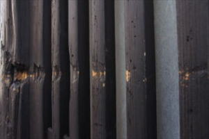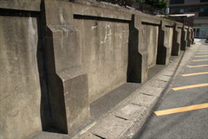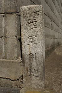 ![]() 「伏見奉行所跡」の石標、桃陵団地西の入り口 ![]() 伏見奉行所跡の石垣遺構、出土した石垣の一部が保存されている。箭穴(やあな)で石を割った跡が残る。桃陵団地内南西角。 ![]() 桃陵団地の石垣、高塀は当時のものではなく再現されたもの。桃陵団地西側。 ![]() 「伏見工兵第十六大隊跡」の石碑、桃陵団地西の入り口。 ![]() 伏見工兵第16大隊の戦跡、コンクリートの塀跡、塀の内側から見た構造物。桃陵団地内北東。 ![]() 伏見工兵第16大隊の戦跡遺構、「七 陸軍用地」とあり、境界杭の一つ。周辺には同じようなものが複数存在するという。桃陵団地内北西。 ![]() 伏見工兵第16大隊の遺構「愛馬之碑」、軍馬の慰霊の塚。桃陵団地内北西。 ![]() ![]() 【参照】料亭「魚三楼」は団地の北西近くにある。店は江戸時代、1764年、讃岐出身の初代・三郎兵衛が創業した。 御香宮との関わり深く、江戸時代末、鳥羽・伏見の戦いの際には、御香宮境内に布陣した薩摩軍に炊き出しを行う。 ![]() 【参照】料亭「魚三楼」、格子戸2か所に、江戸時代末の鳥羽・伏見の戦いの際の弾痕がある。銃弾は右方(北側)から入り、格子をかすめて左端の柱で留まった。 |