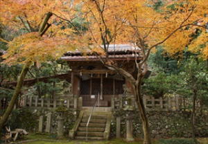 長岡京市粟正の丘陵地に子守勝手神社(こもりかって-じんじゃ)がある。粟生村の産土神として祀られてきた。境内は観音寺と隣接している。 祭神は、子守社に水分神(みずまくりかみ)、勝手社は天忍穂耳命(あまのおしほみのみこと)、大山祗命(おおやまみずのみこと)、木花咲耶姫(このはなさくやひめ)、ほか二神を祀る。 女人安産、子孫繁栄の守護神として信仰された。 ◆歴史年表 創建、変遷の詳細は不明。 平安時代、927年、「延喜式」によれば子守社は、 農業用水を司る水分神、勝手社は国土を開き、国家を守り、悪魔降伏させる天忍穂耳尊、大山祇命などを祀るものという。 ◆十人衆 粟生の長老で構成される「十人衆」が奉祀している。一老から十老の年寄りによる。 ◆紅葉 境内に楓がある。 ◆年間行事 夏越しのお祓い(7月29日)、町祈祷祭(9月1日)、例祭(10月21日)。 *年間行事は中止・日時・内容変更の場合があります。 *年号は原則として西暦を、近代以前の月日は旧暦を使用しています。 *参考文献・資料 『京都府の地名』、『洛西三十三所観音霊場』 ![]() ![]() ![]() ![]() |