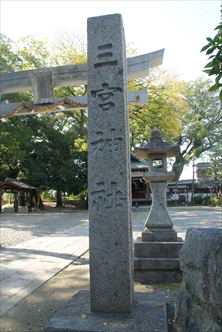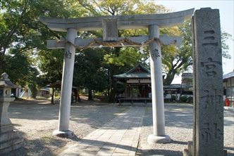 西京区周辺に複数存在する三宮神社(さんのみや-じんじゃ)の一つで、境内には巨大なムクノキが植えられている。
