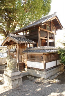 祭神は天児屋根命(あめのこやねのみこと)、大山咋神(おおやまくいのかみ)、八幡大明神を祀る