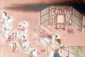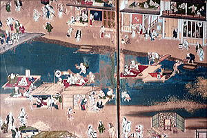 【参照】江戸時代初期の「四条河原遊楽図屏風」、御池大橋の説明板より![]() 【参照】上掲「四条河原遊楽図屏風」の芝居小屋 ![]() 【参照】上掲「四条河原遊楽図屏風」の見世物小屋 ![]() 【参照】江戸時代前期の「鴨川遊楽図」、四条河原の中洲様子、御池大橋の説明板より ![]() 【参照】上掲「鴨川遊楽図」の夕涼み ![]() 【参照】上掲「鴨川遊楽図」の射的 ![]() 【参照】江戸時代前期、円山応挙の「華洛四季遊戯図巻」、中洲での夕涼みの様子、御池大橋の説明板より ![]() 【参照】上掲「華洛四季遊戯図巻」の飴売り、扇子売り ![]() 【参照】江戸時代中期の『都名所図会』に描かれている四条河原夕涼(ROIS-DS人文学オープンデータ共同利用センター) |
