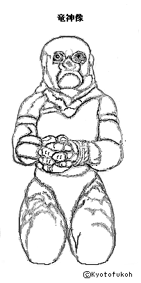 ⋄竜神像(3尺。90cm)は、鬼の裸身像であり、両眼が飛び出し、両手を前に合わせ縄がかかる。竜宮の弟であり、村人に頼まれ水を自由にしたため叱られ縛られたという。近代、1889年に盗難に遭い、1901年に御所御苑内での美術展出品のため発見され、並川靖之により鑑定され戻された。雨乞いの信仰を集めた。