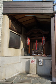 千本通鞍馬口を少し上った東側、バス停の近くに小さな地蔵尊祠がある。歯の地蔵、逆川地蔵(さかさがわ-じぞう)、歯形地蔵(はがた-じぞう)とも呼ばれている。 歯痛平癒の信仰がある。 ◆歴史年表 かつて鞍馬口通には、紙屋川支流の小川が流れていたという。地蔵はその橋の袂に安置されていた。 江戸時代、洛陽四十八願所地蔵めぐり(京都四十八願寺)の第18番札所の札所本尊ともみられている。 寛文年間(1661-1673)、第112代・霊元天皇の命により、僧・宝山が洛外・六地蔵以外の48か寺の地蔵尊を選び、その一つになる。 後、川は暗渠になり、地蔵尊祠が残された。 ◆逆川・歯形地蔵 かつて鞍馬口通には紙屋川支流の小川が流れていたという。流路は不明だが、現在地の北西、金閣寺の北、鏡石付近より分流し、一部が上(北)に流れるため、逆川といわれていた。当時の京洛では、一般的に川は南に流れ下っていた。川は千本通付近まで流れており、川には橋が架けられていた。橋の袂に地蔵尊が安置され、逆川にあることから逆川地蔵と呼ばれた。 伝承がある。地蔵尊の近くに夫婦が住んでおり、夫は大工をしていた。夫は仕事一筋の人で、妻は夫のあまりの評判に浮気でもされるのではないかと常々案じていた。ある雨の夕方、妻が夫の出先に迎えに出ると、案の定、夫は若い娘と相合傘に入り歩いてきた。妻は逆上し、夫につかみかかる。夫は驚き、逆川の橋下に逃げ込んだ。地蔵の陰に隠れていると、妻は夫の肩に噛みつく。だが、妻は見誤り地蔵尊の肩を噛んでいた。妻の歯が地蔵尊に食い込み離れなくなる。通りかかった老僧が、経文(呪文)を唱え助けようとした。それでも歯は離れず(離れたとも)、ついに妻はそのまま絶命したという。 その後、この地蔵尊に妻の歯形が残っていたため、歯形地蔵とも呼ばれるようになる。やがて、歯痛治療の信仰も生まれたという。 ◆地蔵 地蔵尊は菩薩ではなく、実際には阿弥陀如来坐像であり、正印を結ぶ。像高50cm、花崗岩製。 *年号は原則として西暦を、近代以前の月日は旧暦を使用しています。 *参考資料・資料 「下十二坊町の説明版」、『旧版 京のお地蔵さん』、『新版 京のお地蔵さん』、『京都のご利益手帖』 ![]() ![]() ![]() ![]() ![]() |