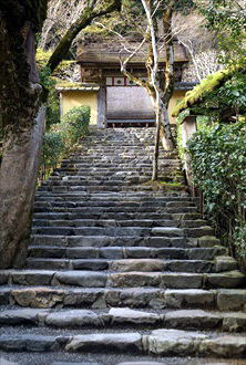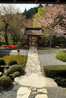 大原草生(くさお)町の翠黛山(すいたい-ざん、小塩山)麓に、寂光院(じゃっこう-いん)はある。建礼門院と関わりある尼寺として法脈を継いでいる。 山号を清香山(せいこう-ざん)、寺号は玉泉寺(ぎょくせん-じ)という。かつて境内に多くの万両が自生したことから「万両寺」とも呼ばれたという。 天台宗延暦寺派、本尊は六万体地蔵尊。 神仏霊場会第105番、京都第25番。尼寺霊場の一つ。京都洛北・森と水の会。御朱印が授けられる。 ◆歴史年表 創建、変遷の詳細は不明。 飛鳥時代、594年、厩戸王(うまやどのおう、聖徳太子)が、父の第31代・用明天皇の菩提寺として開創したという。創建当時は「仏教」を唱えた。初代住職は、厩戸王(聖徳太子)の乳母(乳人)・玉照姫(たまてるひめ、慧善比丘尼) という。(寺伝) また、真言宗開祖・空海(774-835)の創建ともいう。 平安時代、比叡山延暦寺三千坊の一つだったともいう。念仏別所になる。 承徳年間(1097-1099)、天台宗の良忍(りょうにん) の開基によるともいう。(『扶桑京華志』『京羽二重』)。来迎院の子院だったともいう。 1165年、第2代・阿波内侍(あわのないし)が入寺し、中興開祖とされる。(『延慶本平家物語』) 1185年、9月、建礼門院が入寺し、第3代・真如覚比丘尼としてこの地で6年間隠棲した。草庵を結び、阿波内侍、大納言佐局が供になった。以後、「御閑居(ごかんきょ)御所」、「高倉后(たかくらこう)大原の宮」とも呼ばれた。 1186年、4月下旬、後白河法皇(第77代)が建礼門院を訪れたという。(「大原御幸」)。(『平家物語』「潅頂の巻」、『閑居友』)。法皇は建礼門院のために、平重盛の摂津国領地、山城国葛野郡下山田村、山城国愛宕郡八瀬を寄進したという。同年、右京大夫が建礼門院を訪ねる。 1187年、幕府は、女院領として平宗盛の旧領地・摂津国真井荘、嶋屋荘を贈る。 中世(鎌倉時代-室町時代)以降、近江国坂本・聖衆来迎寺に属した。以後、同寺で得度した尼僧が歴代住持に就いた。 鎌倉時代、天台宗、浄土宗の兼学になる。尼寺末寺の一寺(葛野郡山田村)があったという。 1192年、公卿・藤原隆房の北の方が建礼門院像を納める。(寺伝) 13世紀(1201-1300)前半、官女だった5代・妙境、6代・妙照、7代・妙圓が継ぐ。 1229年、来迎院の寂如の発願により、旧本尊・地蔵菩薩立像(六万体地蔵菩薩)が造立される。 室町時代、1513年、寺は荒廃し、真玄が修復する。 安土・桃山時代、1599年/慶長年間(1596-1615)、淀殿の寄進により本堂の改築が始まる。片桐且元が堂宇を再建した。 1603年、豊臣秀頼により本堂の外陣が再興される。徳川家康、淀殿は夭逝した鶴松を弔い、秀頼の身を案じて復興に尽力したという。寺領30石が寄進された。 江戸時代、寂光院への行楽が盛んになる。 1612年、装剣金工・後藤長乗は権中納言に所望し、『大原御幸縁起』を制作させる。寺領として八瀬村の一部30石がある。 1689年、この地の草生(くさお)は半井通仙院領になる。(『京羽二重織留』) 1775年、有栖川宮織仁親王は安徳天皇、後白河天皇像を描く。 1800年、微重が母の三回忌を期して『平家物語』覚一本写本を寄進する。 1801年、西尾芳重が平曲奉納し、祖父遺愛の平家琵琶「木枯」を寄進する。 1813年、豊臣秀頼二百年御忌を催した。 1815年、東照宮(徳川家康)二百年御忌を催した。 1834年、安徳天皇650回忌に平曲家が平曲を奉納する。 近代、1868年、太政官達旨により延暦寺末寺になり天台宗になる。 1876年、寂光院後山御陵を建礼門院西陵とされる。 1929年、第124代・昭和天皇大典に使用された茶室「孤雲庵」が山内に移される。 現代、1986年、本尊・地蔵菩薩立像、小地蔵菩薩立像などが重要文化財に指定される。 2000年、不審火により本堂が焼失した。本尊、建礼門院坐像、阿波内侍坐像などが損焼し、焼失している。汀の桜、千年姫小松も被災する。書院が建立された。 2004年、ご神木の千年姫小松が枯死した。 2005年、本堂は再建される。新本尊・地蔵菩薩立像の開眼法要が催される。千年姫小松が伐採される。 2006年、宝物殿「鳳智松殿」が開館する。 ◆玉照姫 飛鳥時代の玉照姫(たまてるひめ、?-?)。詳細不明。女性。父・大連(有力豪族) ・物部守屋(?-587) とされる。厩戸王(聖徳太子)の乳人(めのと)になる。548年、出家したという。「日本仏教三比丘尼」の一人とされ、惠善比丘尼(えぜんびくに)と称した。 ◆建礼門院 平安時代後期-鎌倉時代前期の第80代・高倉天皇皇后・建礼門院(けんれい-もんいん、1155/1157?-1213/1214?)。女性。平徳子(たいら-の-のりこ)、法号は真如覚。京都の生まれ。父・平清盛、母・二位の尼(平時子、平時信の娘)の次女。同母兄弟に宗盛、知盛、重衡。1171年、従三位に叙され、後白河法皇(第77代)の猶子になり、高倉天皇の女御として入内した。1172年、高倉天皇の中宮になる。1178年、言仁親王(第81代・安徳天皇)を産み、1180年、国母になる。1181年、高倉天皇没後、父・清盛は徳子の後白河法皇入内を望が、徳子は抗議する。清盛も亡くなる。内裏外郭十二門の一つ、