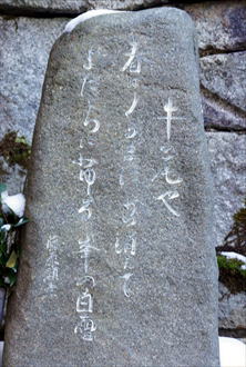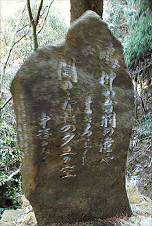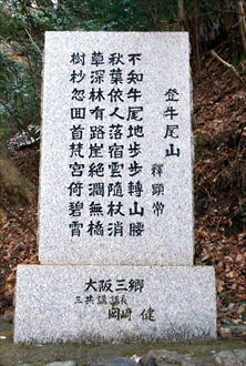 ![]() 鎌研ぎ橋 ![]() 大師堂、大日如来、弘法大師が安置されている。空海は牛尾山で修行し、等身大の自刻像を残したという。 ![]() 大師堂 ![]() 大師堂、弘法大師が休んだという腰掛石 ![]() 牛尾山十八丁の丁石 ![]() 弘法大師像、経岩(お経岩) ![]() 経岩(お経岩) ![]() 「夕されば 松吹く風の 音羽川 あたりも涼し 山の下かげ」(後西園寺入道、「続後拾遺集」)、西園寺公経(さいおんじ きんつね、1171-1244)は、平安時代、鎌倉時代の公卿・歌人。 ![]() 「音羽河 雪げのなみも 岩こえて 関のこなたに 春はきにけり」(藤原定家、「内裏名所百首」)、藤原定家(1162- 1241)は鎌倉時代初期の公家・歌人。 ![]() 夫婦ノ滝 ![]() 不動尊 ![]() 不動尊 ![]() 不動尊、湧水がある。 ![]() 「鳴(なる)神の音羽の滝やまさるらん 関のこなたの夕立の空」(中務のみこ、「夫木抄」)、宗尊親王(中務のみこ)(1242-1274)は、鎌倉時代の皇族、歌人。 ![]() 音羽ノ滝(布引滝) ![]() 大蛇塚 ![]() 大蛇塚