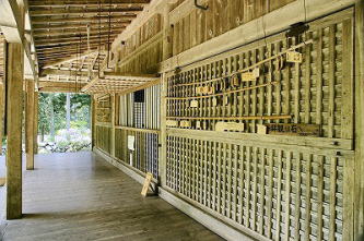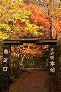三千院より呂川沿いの山道をしばらく登る。小野山から南へ流れる呂川、北の律川に挟まれた地に来迎院(らいごう-いん)はある。 魚山上ノ院本坊来迎院ともいう。勝林院とともに大原二流の声明道場として知られた。山号は魚山という。 天台宗延暦寺派の別院。本尊は薬師如来を安置している。 京都洛北・森と水の会。御朱印が授けられる。 ◆歴史年表 平安時代、仁寿年間(851-854)、慈覚大師円仁(794-864)は、天台声明の修練道場として開いた。中国天台山を模して堂塔を建立したという。 その後、衰微する。 1094年、良忍が来住し、天台声明を確立し大原魚山流とした。以後、大原は勝林院とともに声明の中心地になる。 1109年、聖王大師(良忍)により再興され、来迎寺と称される。この頃、薬師・釈迦・阿弥陀仏の三尊を安置し、「三尊院」と呼ばれたという。 1126年、焼失している。 1156年、比叡山延暦寺は大原に梶井門跡の政所を設け、以後、来迎院、勝林院、念仏行者などを統括・管理した。 1174年、縁忍が住した。公卿・吉田経房が来迎院、極楽院を訪れる。 1184年、薬師供が始まる。(『玉葉』) 鎌倉時代、1200年、藤原兼実、藤原定家は良忍の経蔵、如来蔵を訪れている。 1236年/1238年、宗快は声明を再興した。 南北朝時代、南朝初代・後醍醐天皇(在位1318-1339)の時、綸旨により康空示導が住した。 室町時代、1426年、11月、焼失した。 永亨年間(1429-1441)、再建されている。 文明年間(1469-1486)以後、勝林院とともに、1月、2月、5月に懺法講を修していた。 1533年/天文年間(1532-1553)/1552年、改修される。現在の本堂が建てられた。 江戸時代、梶井門跡支配になり、朱印地69石を領し、諸堂も建てられた。 近代、塔頭の浄蓮華院、蓮成院、善逝院、遮那院などが独立し、総称としての来迎院は、現在の本堂に残された。 ◆円仁 平安時代前期の天台僧・円仁(えんにん、794-864)。男性。俗姓は秦、号は光乗房、諡号は聖応(しょうおう)大師。下野国(栃木県)の生まれ。9歳で大慈寺・広智に師事、808年、15歳で唐より帰国した比叡山の最澄に師事し、最期まで14年間仕えた。815年、東大寺で具足戒を受ける。比叡山で12年の籠山行に入る。5年後、法隆寺、四天王寺での夏安吾(げあんご、修行僧の集団生活による一定期間の修行)講師、東北への教化を行う。一時心身衰え、829年、横川に隠棲した。常坐三昧、法華経書写などの苦修練行を続け、夢中に霊薬を得て心身回復し、法華経書写を始め、小塔(如法堂)を建て写経を納めたという。首楞厳院(しゅりょうごんいん)を建立した。836年、837年、渡唐に失敗し、838年、最後の遣唐使として渡る。その後、遣唐使一行から離れ、840年、五台山・大花厳寺を巡礼し国清寺で学ぼうとしたが許可が下りなかった。長安・大興善寺で金剛界の灌頂を受け、青竜寺で胎蔵界灌頂、蘇悉地大法を授かる。また、悉曇(梵語)、止観(禅)も学んだ。山東半島、赤山新羅坊の新羅寺・赤山法華院で新羅仏教を学ぶ。現地では仏教弾圧(会昌の破仏)があり、日本と新羅はこの間に国交断絶していた。847年、帰国、仏典、金剛界曼荼羅など多数を持ち帰る。848年、比叡山に戻り、円珍に密教を教えた。横川中堂(根本観音堂)を建立する。854年、第3世・天台座主に就く。862年、東塔に天台密教の根本道場・総持院を建立した。『顕揚大戒論』、9年6か月の唐滞在記である『入唐求法巡礼行記』(全4巻)を著す。江戸・瀧泉寺、山形・立石寺、松島・瑞巌寺など多くの寺を開いた。入唐八家(最澄・空海など)の一人。60歳。 没後、日本初の大師号(慈覚大師)を贈られた。 ◆良忍 平安時代後期の融通念仏宗開祖・良忍(りょうにん、1073-1132)。男性。俗姓は秦、若い頃は良仁、号は光乗(静)房、諡号は聖応(しょうおう)大師、本願上人。尾張国(愛知県)の生まれ。父・富田荘領主。1083年、比叡山に入る。比叡山の東塔檀那院実報房辺に住した。堂僧になり、実兄・良賀に師事し出家する。無動寺明王堂に1000日間はだし参りを行う。不断念仏を修め、良仁の名を与えられる。園城寺・禅仁から戒法、観勢から円頓戒脈を相承する。仁和寺・永意から秘密灌頂を受けた。山門派(延暦寺)と寺門派(三井寺・園城寺)との対立を嫌い、山を下りる。1094年、大原に隠棲し、名も良忍に改める。大原・勝林院の永縁らに従い、声明梵唄を学ぶ。その後、常行三昧堂から念仏と読経(声明)を切り離して独立させ、天台声明を統一し大原声明を完成させた。1109年、大原に来迎院・浄蓮華院の2院を建てる。1117年、阿弥陀仏の霊告を感得し、自他融通の念仏を創始した。1124年、宮中で融通念仏会をいとなむ。1125年、鞍馬寺に詣で通夜をし、本尊・毘沙門天が現れて融通念仏を守護すると告げたという。1127年、鳥羽上皇(第74代)の勅願により、河内平野に修楽寺の別院(大念仏寺の前身、日本初の念仏道場)を開く。1132年、来迎院で没したという。60歳。 融通念仏宗の開祖、円仁の請来した声明を習得・大成し、天台大原魚山声明中興の祖になる。融通念仏は阿弥陀仏の