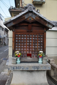 超勝寺門前町に超勝寺(ちょうしょう-じ)が建つ。山号は独妙山という。 浄土宗西山深草派。本尊は阿弥陀如来。 ◆歴史年表 創建の詳細、変遷は不明。 開基は善貞ともいう。 江戸時代、1685年、誓願寺末寺とあり、三条大橋東、北へ上がる現在地付近にあった。(『京羽二重』) 1709年、「京大絵図」にも記されている。 ◆錦光山茂兵衛 江戸時代の陶工・3代錦光山茂兵衛(きんこうざん、?-1755)。詳細不明。男性。名は柳仙、粟田の陶工。孫・宗兵衛(5代? )の墓は茂兵衛の墓の傍にあると記されている。(『坊目誌』) ◆初代・井上八千代 京舞井上流初代・井上八千代(いのうえ-やちよ、1767-1855)。女性。本名は井上サト。京都の生まれ。女性。長州萩の浪人・儒者・井上敬助の妹。天明(1781-1789)、近衛家に仕え、曲舞、白拍子舞を学ぶ。1797年、近衛家を退き、八千代の芸名と近衛菱紋を贈られ定紋として井上流を創始した。主人から贈られた言葉から「八千代」を名乗る。88歳。 ◆二代目・井上八千代 京舞井上流2代目・井上八千代(いのうえ-やちよ、1770-1868)。女性。本名は井上アヤ。京都の生まれ。初代・井上八千代の姪で後に養子になり2代を襲名した。舞に能の金剛流、人形浄瑠璃、歌舞伎の動きを取り入れる。本行舞(ほんぎょうまい)を創始した。98歳。 ◆君尾 江戸時代後期-近代の芸妓・君尾(きみお、1844-1918)。女性。中西きみ。船井郡八木の生まれ。19歳で祇園の置屋「島村屋」に出る。祇園一の美貌を誇り、縄手通のお茶屋「魚品」に出て高杉晋作と懇意になる。長州志士と関係深く、「勤王芸妓」と呼ばれた。1862年、井上馨(聞多)と出会う。1864年、井上が刺客に襲われた際に、君尾が贈った手鏡により命を救われた。南座事件では新撰組に捕らえられそうになる。桂小五郎、品川弥二郎らを逃したとして、壬生の新撰組屯所に捕らえられ拷問を受けるが自白しなかった。言い寄る近藤勇も拒否したという。品川作詞の「トコトンヤレ(トンヤレ)節」を作曲した。品川との間には子・巴があった。75歳。 墓は超勝寺(左京区)にある。 ◆仏像 本尊の阿弥陀如来は安阿弥陀作ともいう。(『浄家寺鑑』) ◆墓 墓地に陶工・錦光山茂兵衛、その孫・宗兵衛、陸田元義(?-1685)、望月珉峩(?-1779)、京舞井上流初代・2代、祇園芸妓・中西君尾などの墓がある。 *非公開 *年号は原則として西暦を、近代以前の月日は旧暦を使用しています。 *参考文献・資料 『京都市の地名』、『京都大事典』、『祇園と舞妓』、『女たちの京都』 、ウェブサイト「コトバンク」 ![]() ![]() ![]() ![]() ![]() |